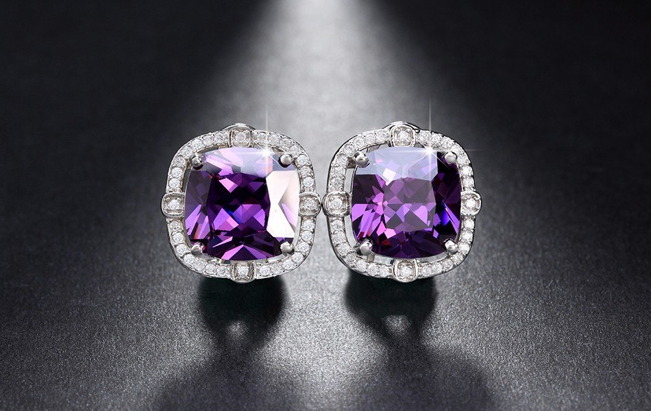 2ct Cushion Cut Purple Amethyst Halo Solitaire Stud Earrings 14k White Gold Over