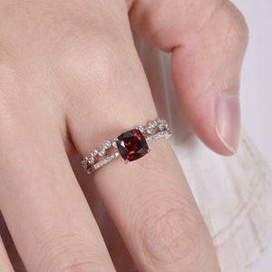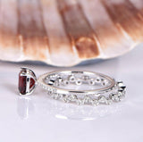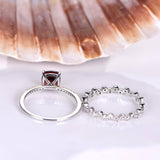 2ct Cushion Cut Red Garnet Bridal Set Women Engagement Ring 14k WhiteGold Finish
