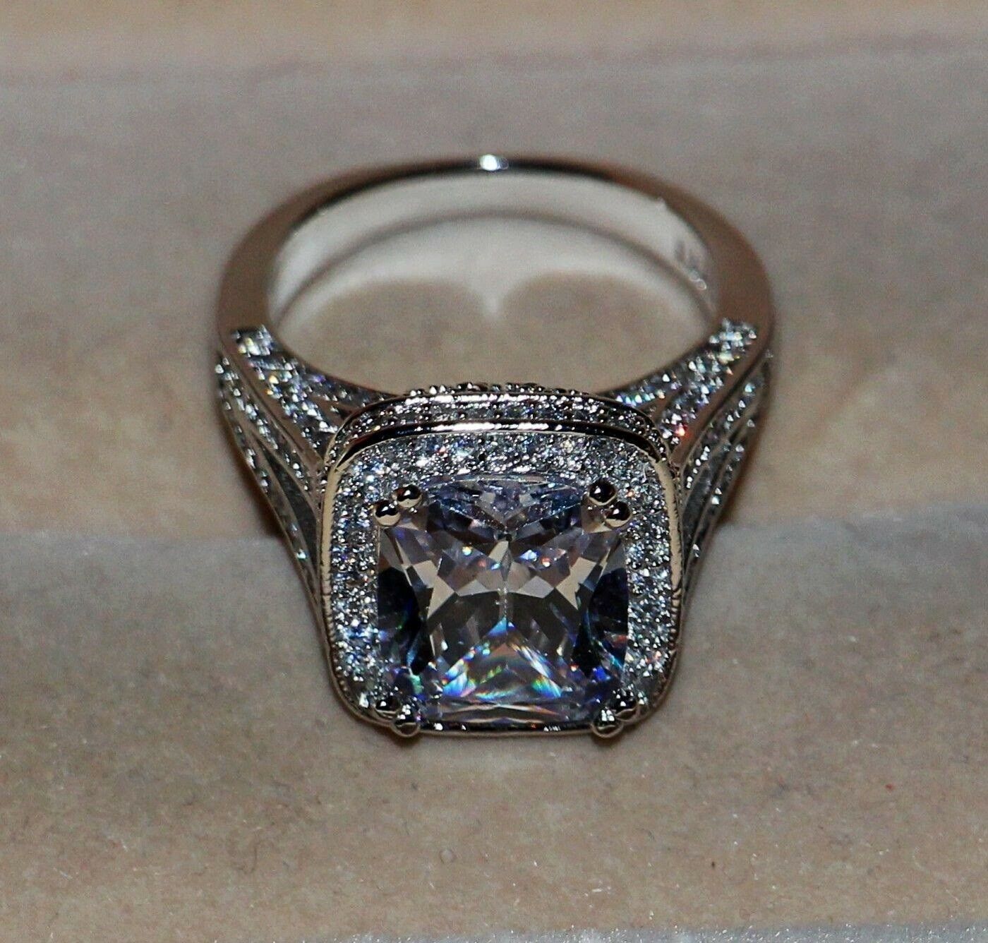 2ct Cushion Cut VVS1D Diamond Engagement Ring 14k White Gold Finish Split Shank