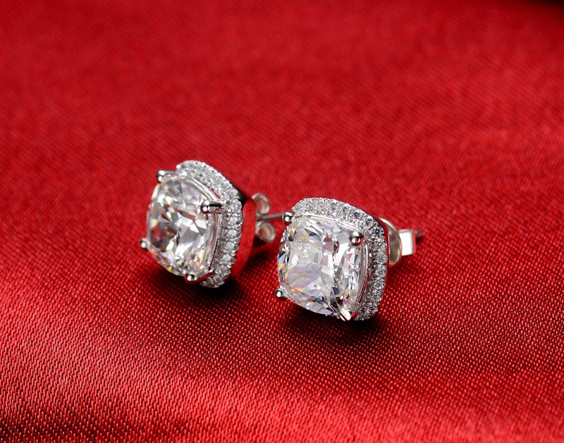 2ct Cushion Cut VVS1D Diamond Halo Solitaire Stud Earrings 18k White Gold Finish