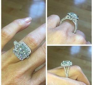 2ct Cushion Cut VVS1D Diamond Split Shank Engagement Ring 14k White Gold Finish