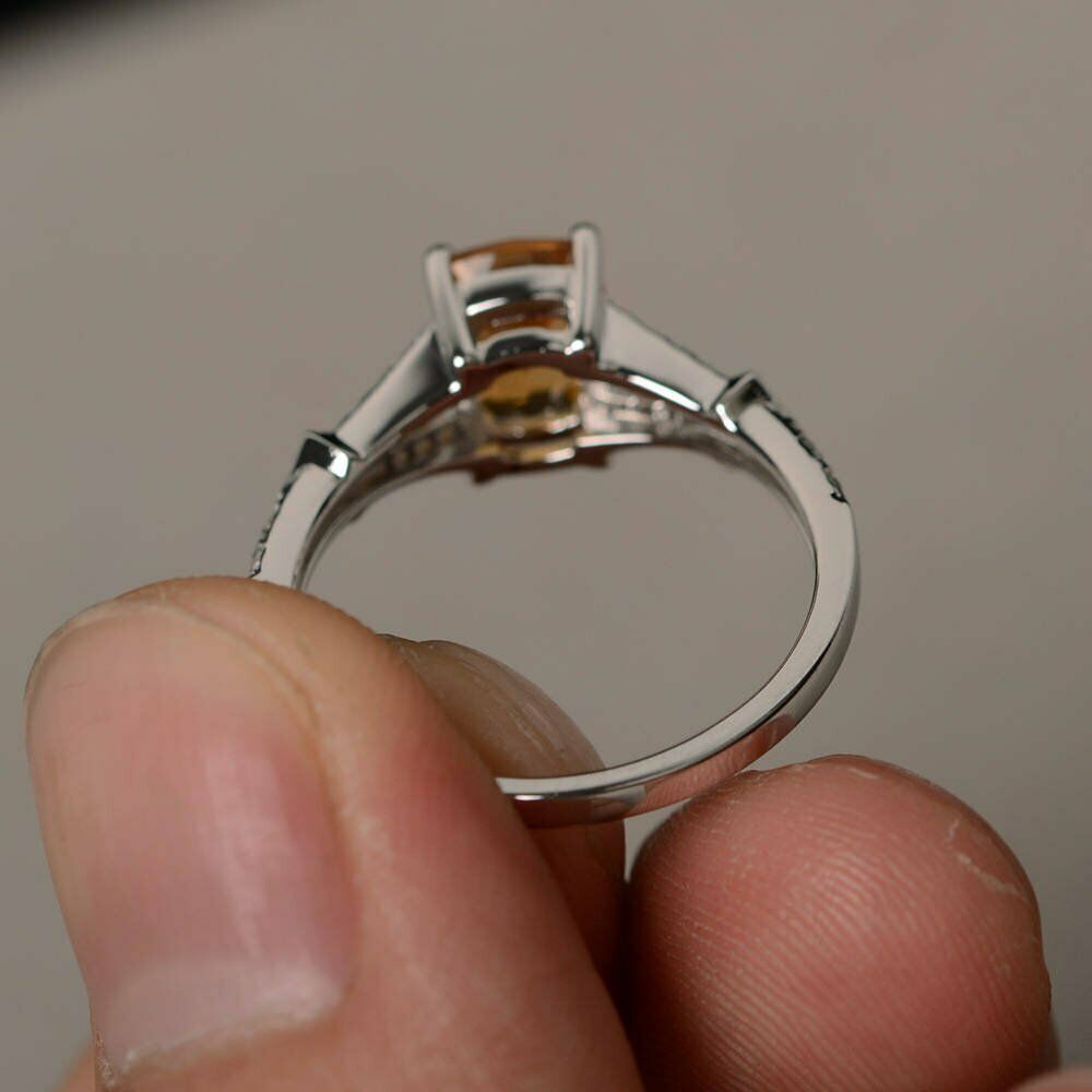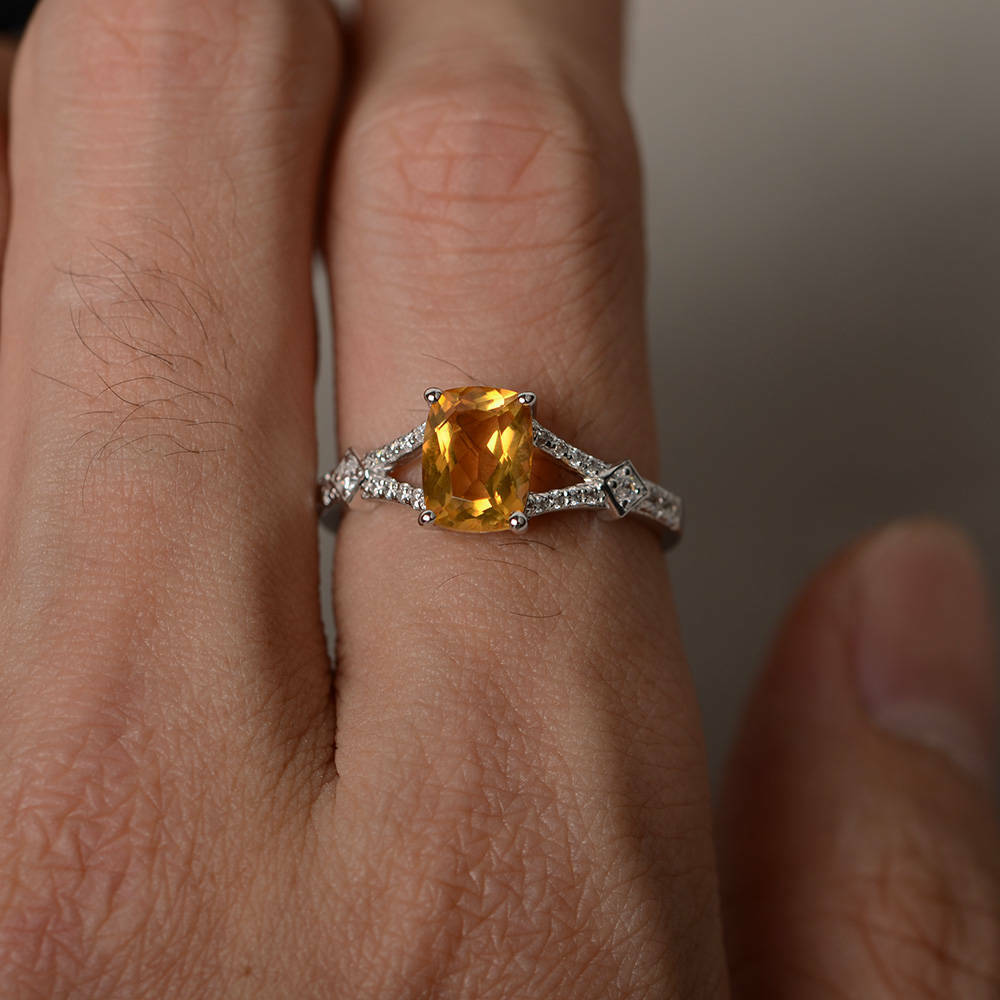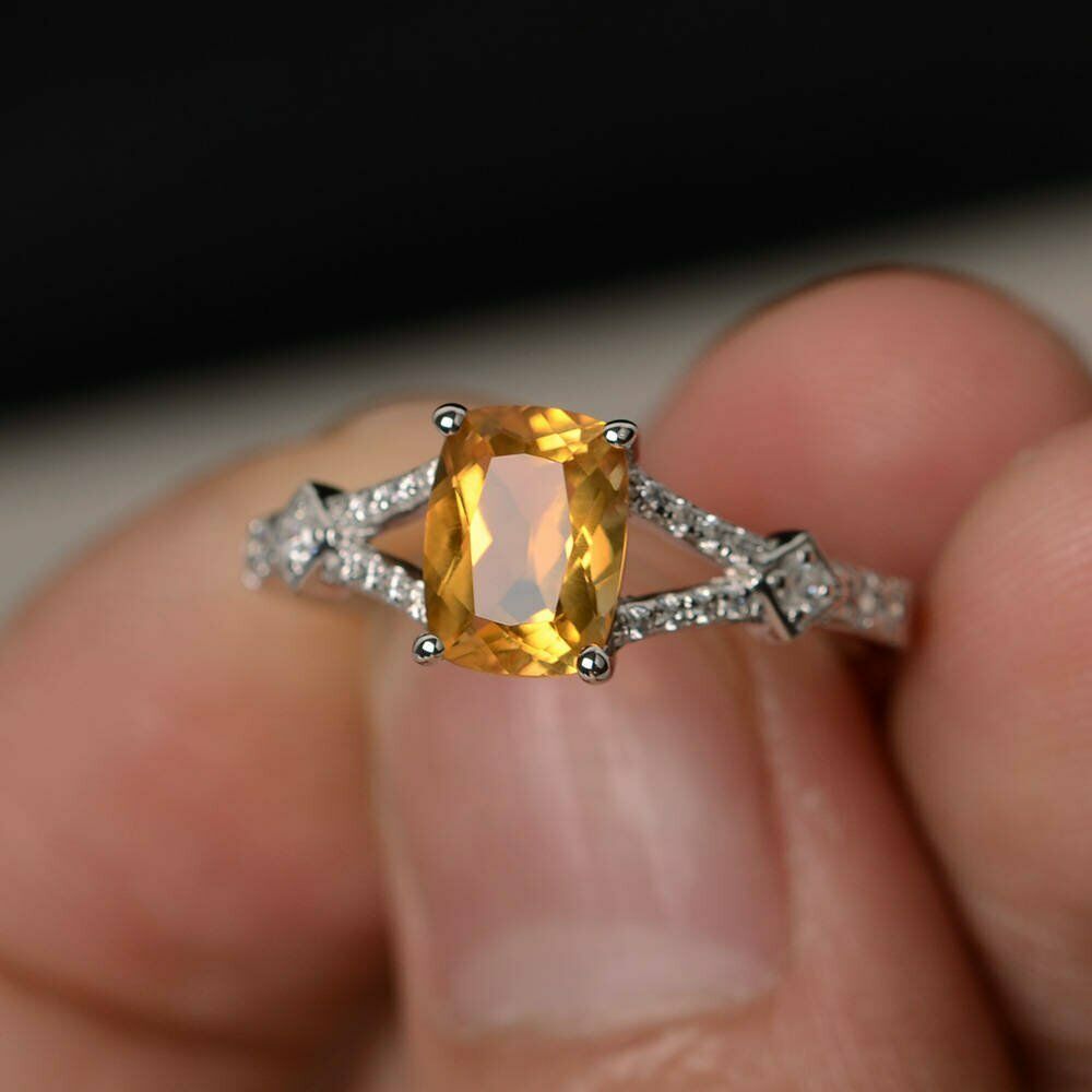 2ct Cushion Cut Yellow Citrine Engagement Ring 14k White Gold Finish Split Shank