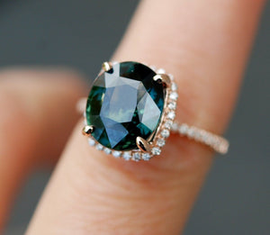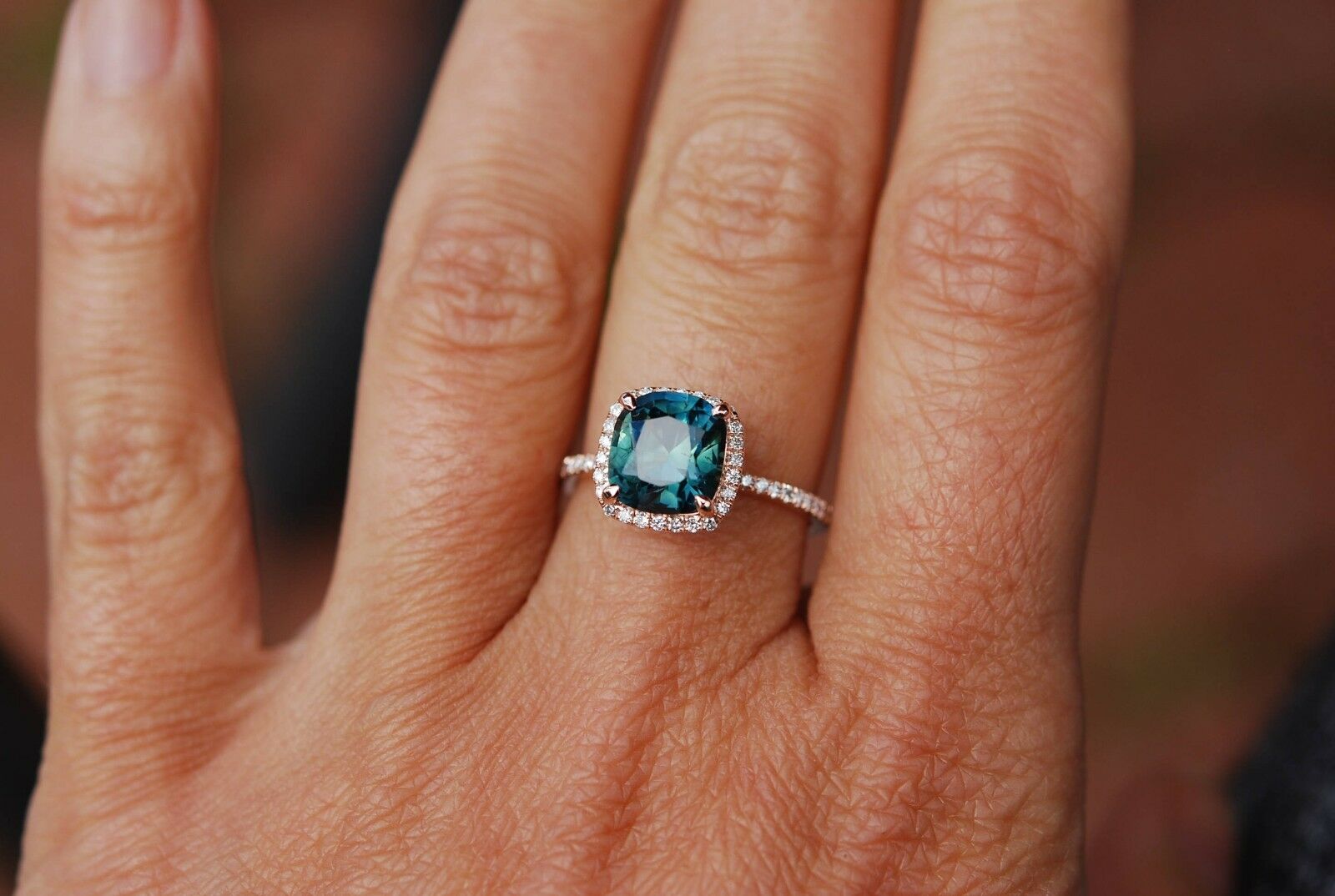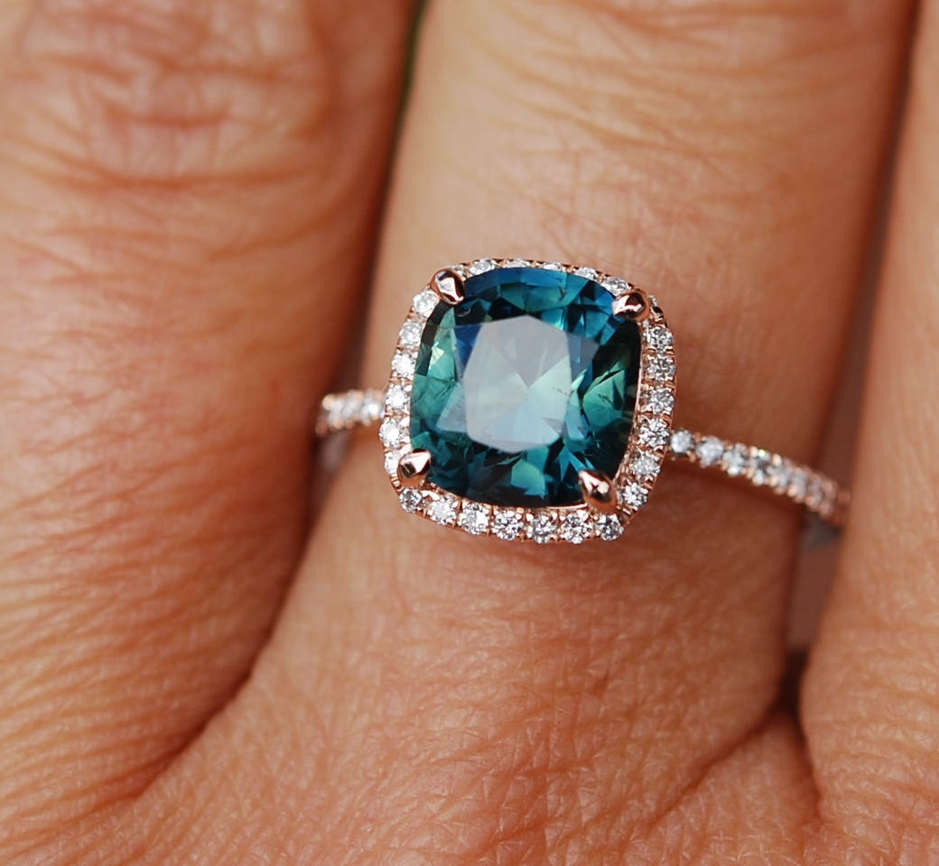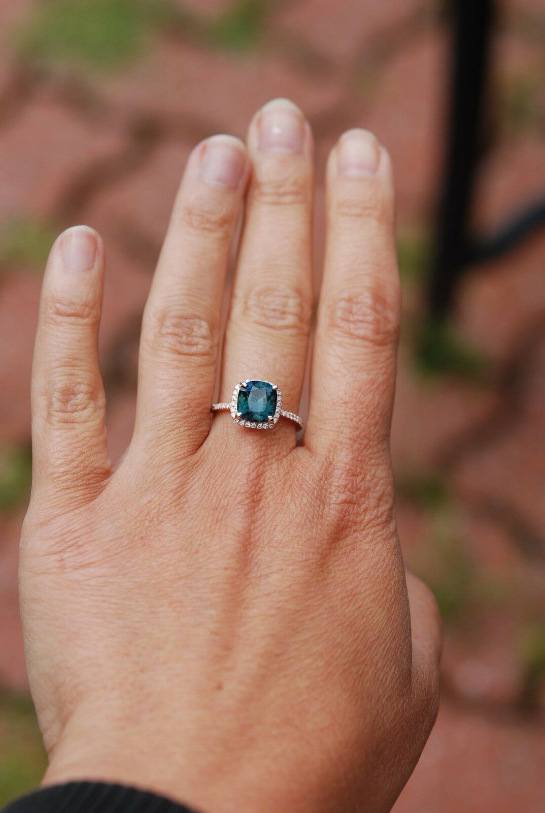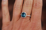 2ct Cushion London Blue Topaz Diamond Accent Engagement Ring 14k Rose Gold Over