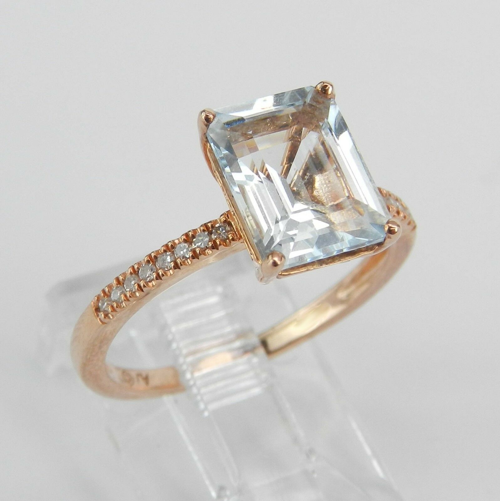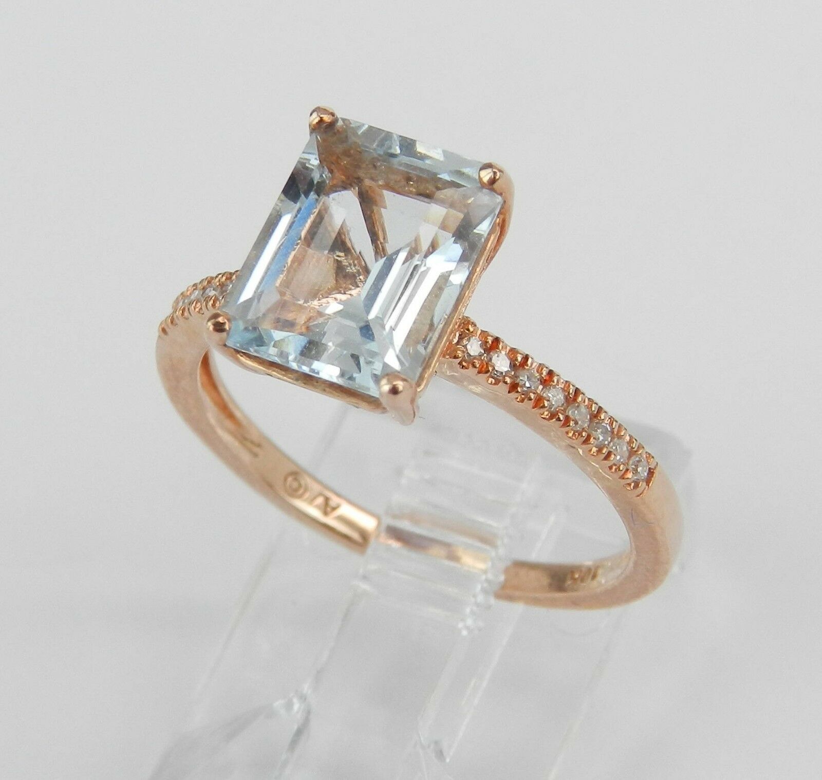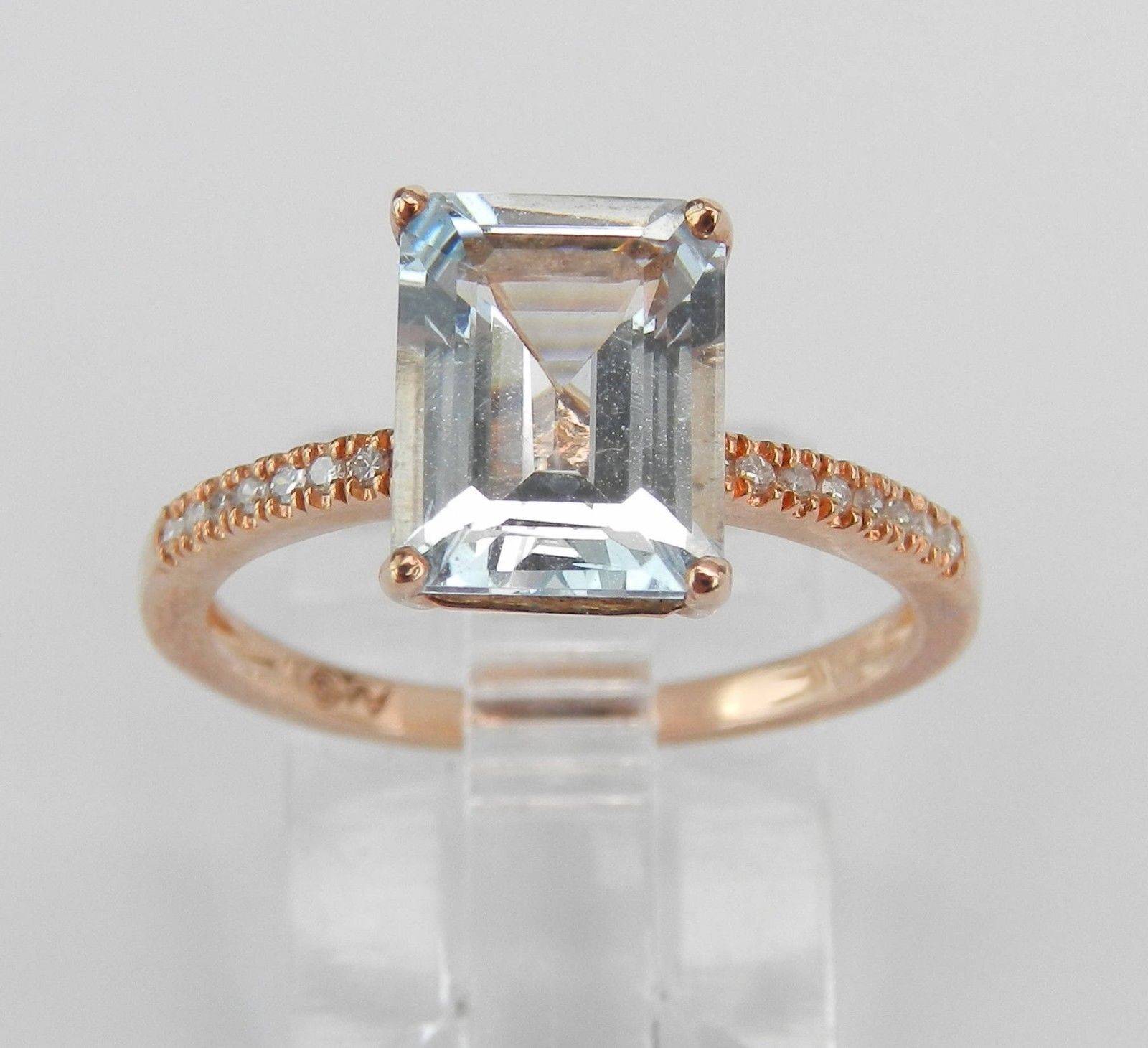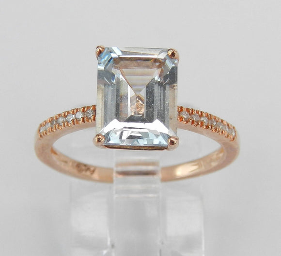 2ct Emerald Blue Aquamarine Diamond Accent Engagement Ring 14k Rose Gold Finish
