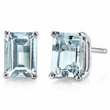 2Ct Emerald Cut Blue Aquamarine Solitaire Stud Earrings 14K White Gold Finish