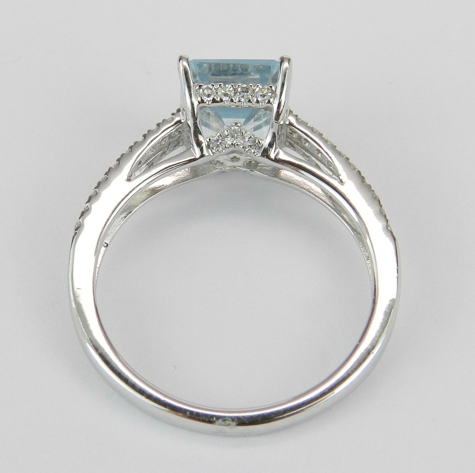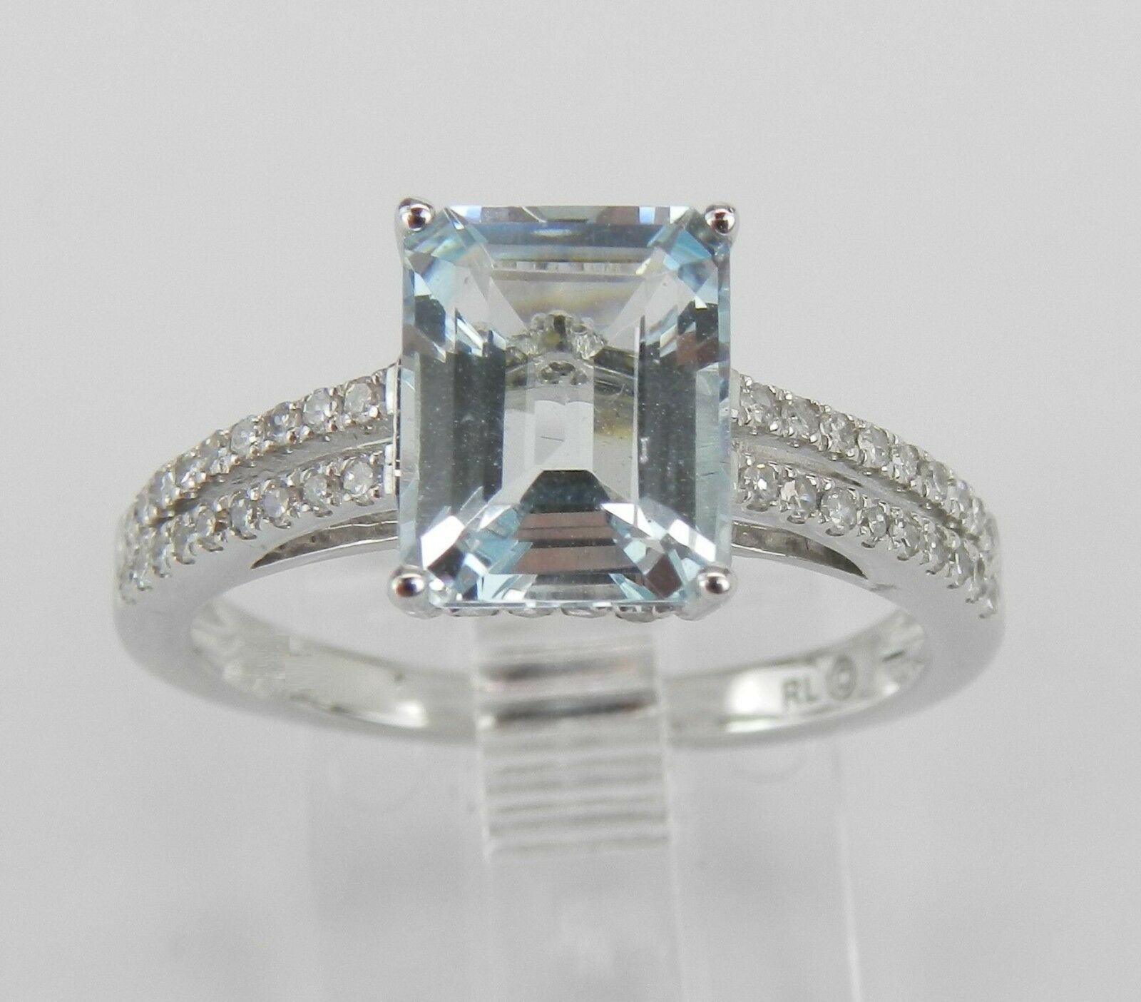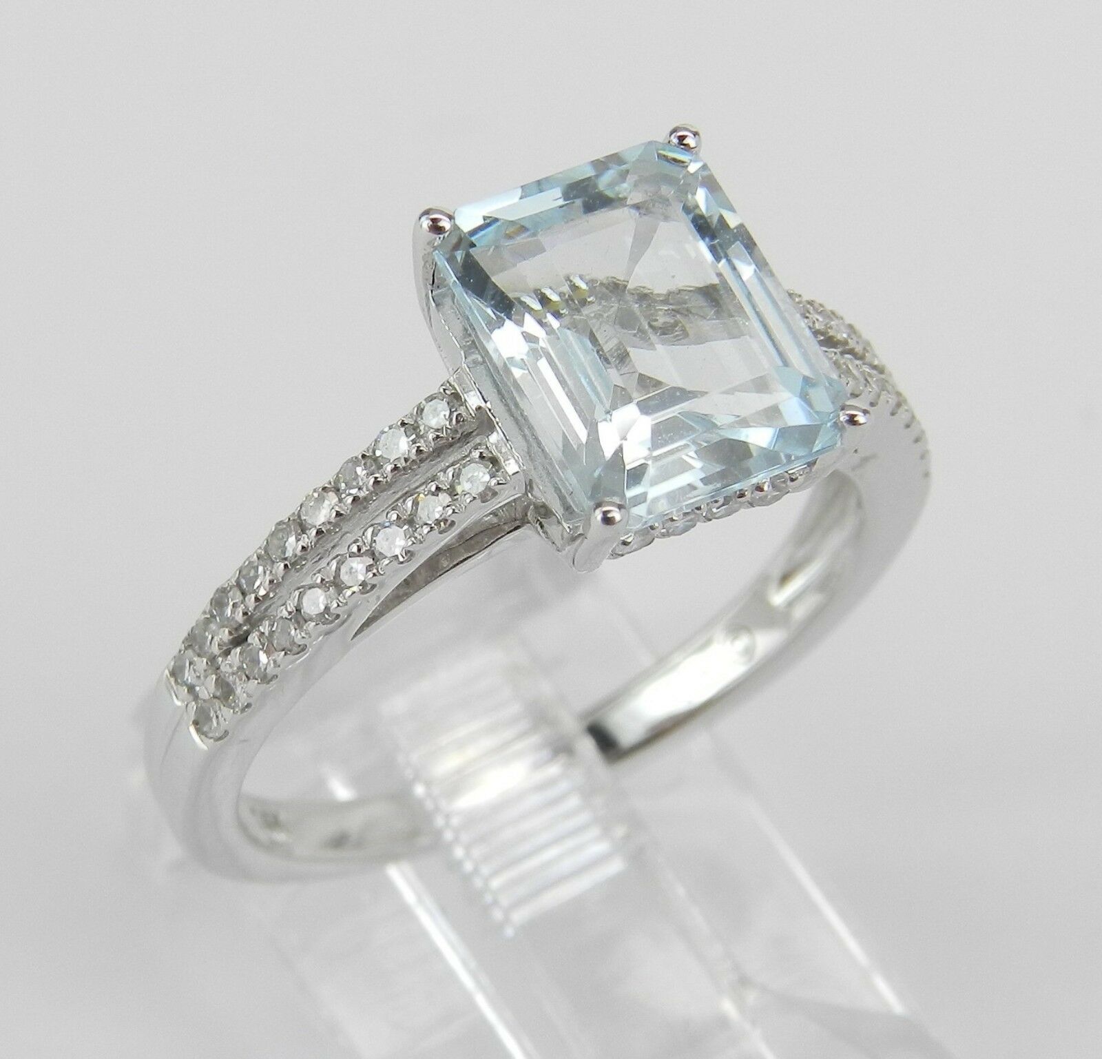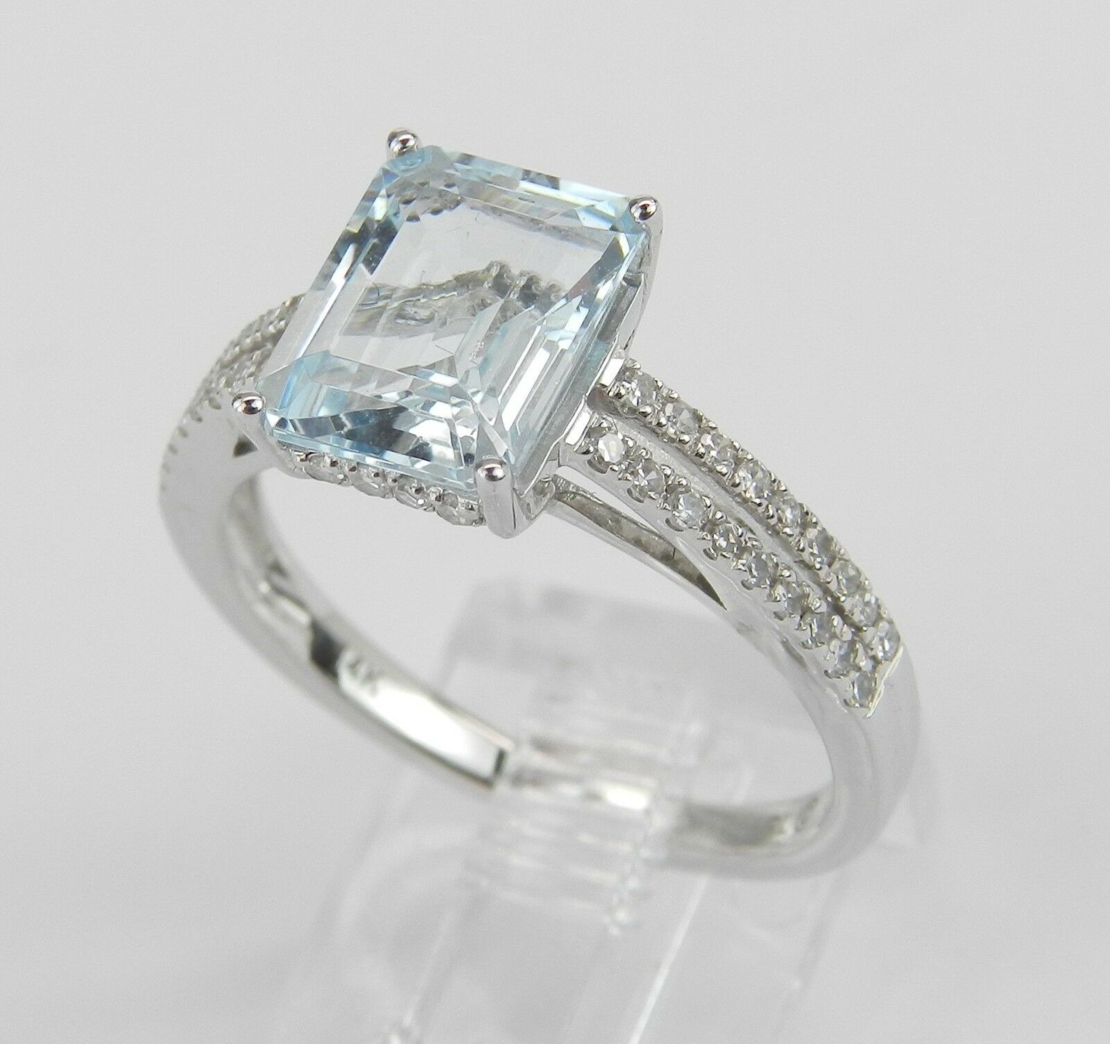 2ct Emerald Cut Blue Aquamarine Split Band Engagement Ring 14k White Gold Finish