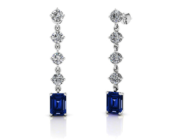 2ct Emerald Cut Blue Sapphire Diamond Drop Earring Women 14k White Gold Finish