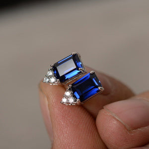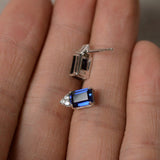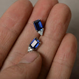 2ct Emerald Cut Blue Sapphire Diamond Elegant Stud Earring 14k White Gold Finish