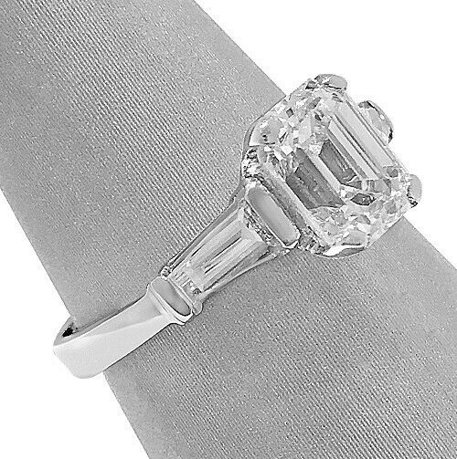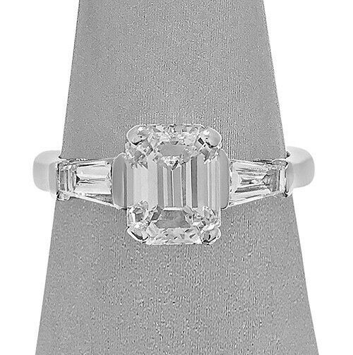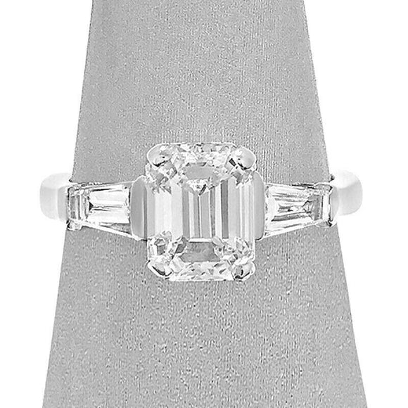2Ct Emerald Cut Diamond Baguette Accents Engagement Ring 18K White Gold Finish