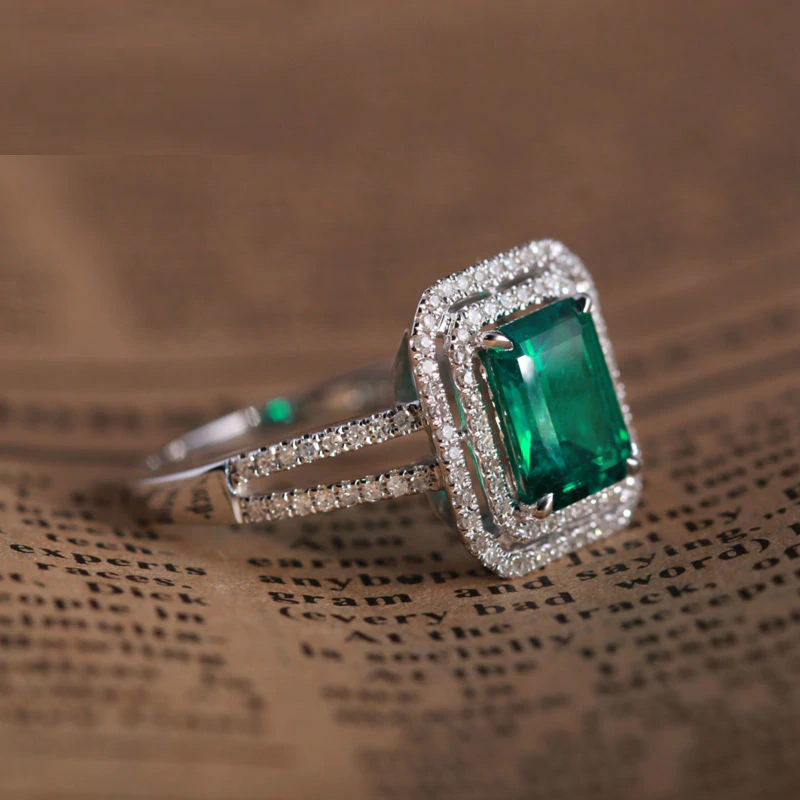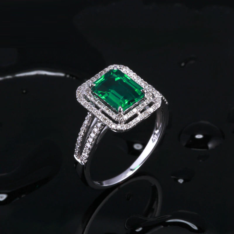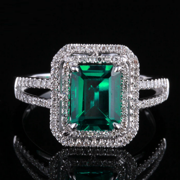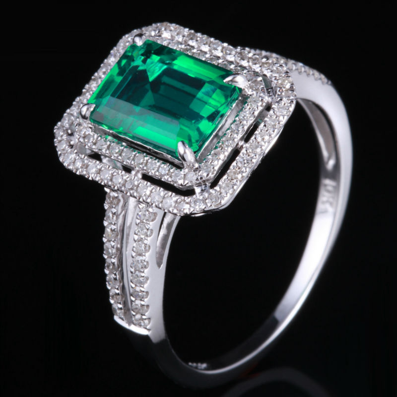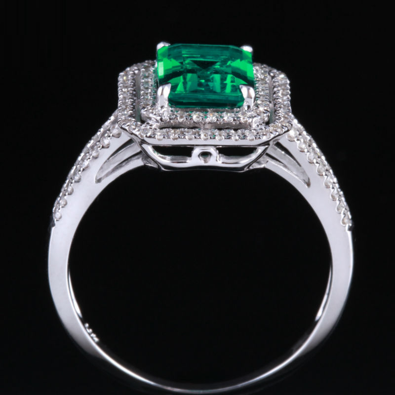 2ct Emerald Cut Green Emerald Double Halo Engagement Ring 14k White Gold Finish