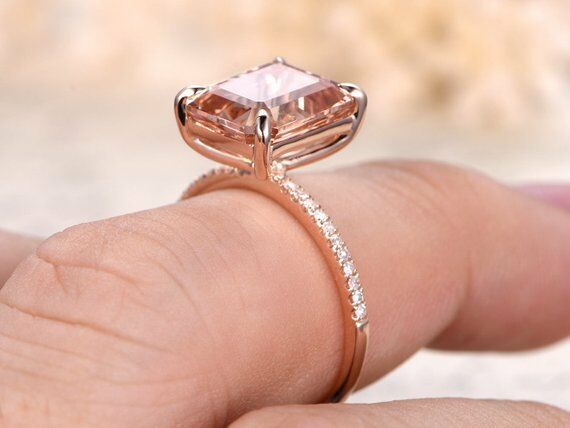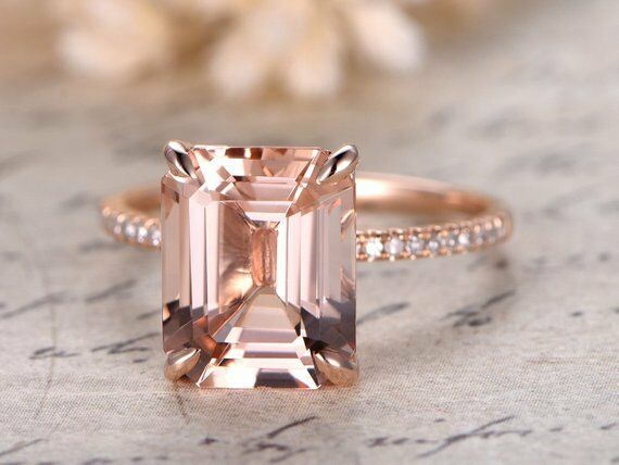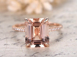 2ct Emerald Cut Peach Morganite Solitaire Engagement Ring 14k Rose Gold Finish