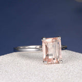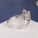 2ct Emerald Cut Peach Morganite Solitaire Engagement Ring 14k White Gold Finish