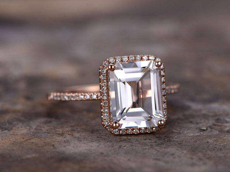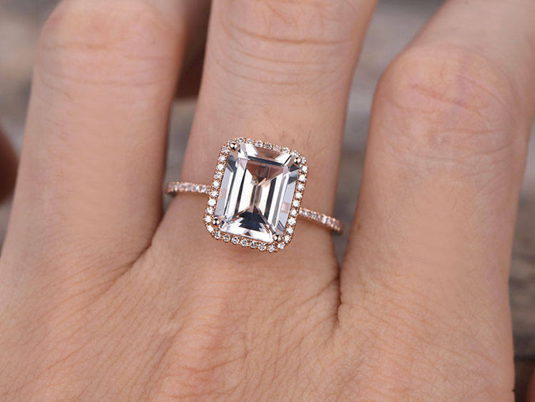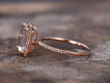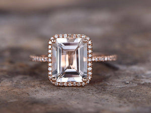 2ct Emerald Cut Pink Morganite Solitaire Engagement Ring 14k Rose Gold Finish