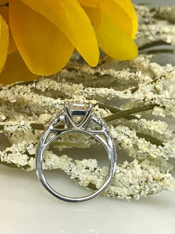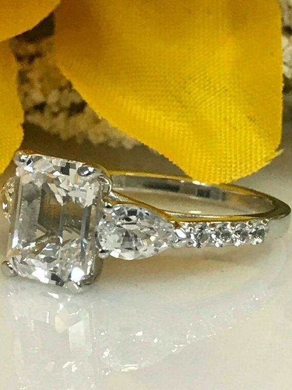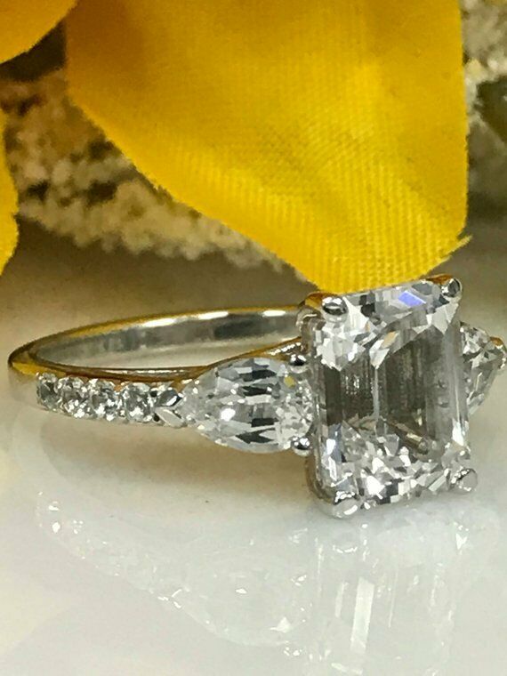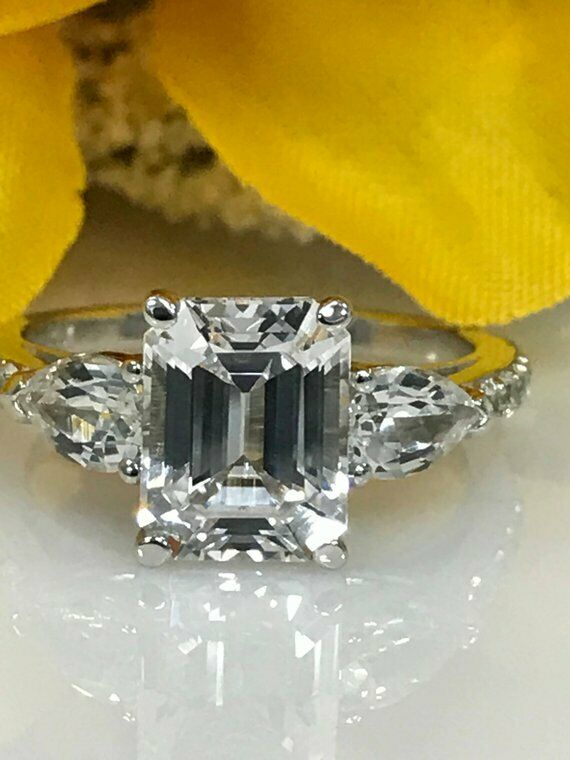 2ct Emerald Cut VVS1D Diamond Three Stone Engagement Ring 14k White Gold Finish