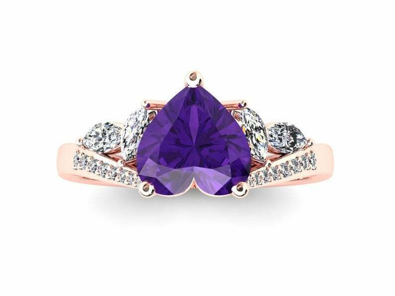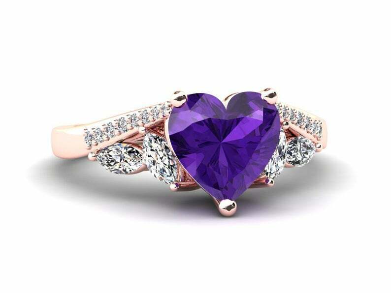 2ct Heart Cut Purple Amethyst Engagement Ring Art Deco Diamond Accent 14k Rose Gold Finish