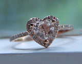 2ct Heart Cut Peach Morganite Diamond Accent Engagement Ring 18k Rose Gold Over