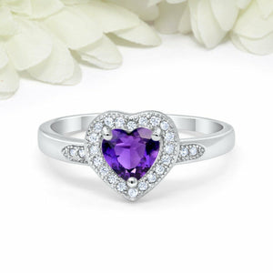 2Ct Heart Cut Purple Amethyst Diamond Halo Engagement Ring 14K White Gold Finish