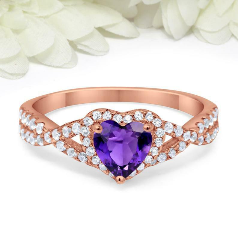 2ct Heart Cut Purple Amethyst Engagement Ring Split Shank Halo 14k Rose Gold Over