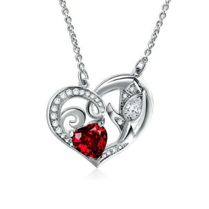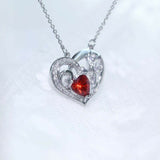 2Ct Heart Cut Red Garnet Diamond Floral Pendant 14K White Gold Finish WITH CHAIN