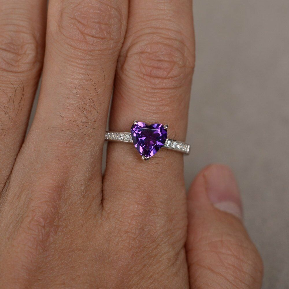 2ct Heart Purple Amethyst Solitaire Promise Engagement Ring 14k WhiteGold Finish