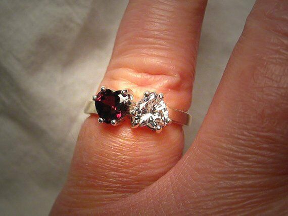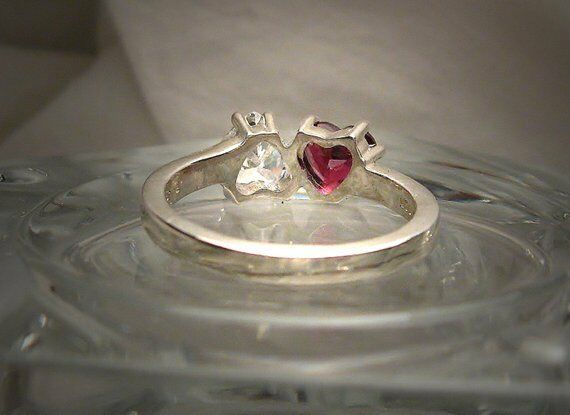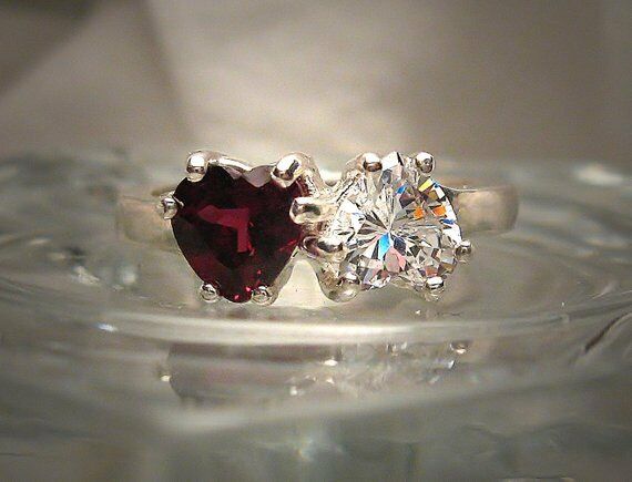 2ct Hearts Red Garnet Diamond Solitaire Engagement Ring 14k White Gold Finish