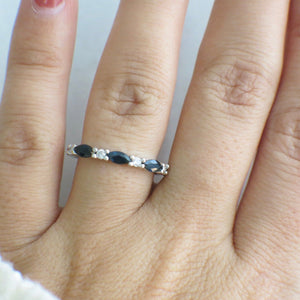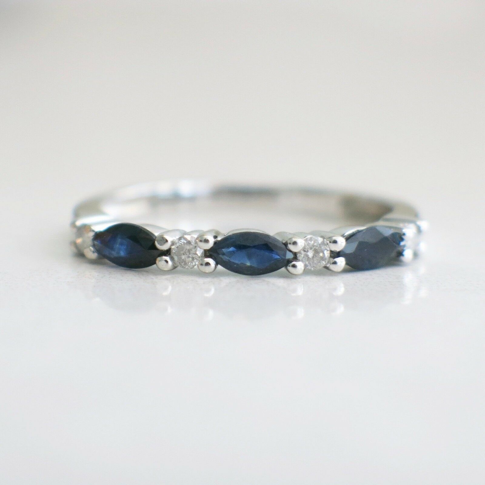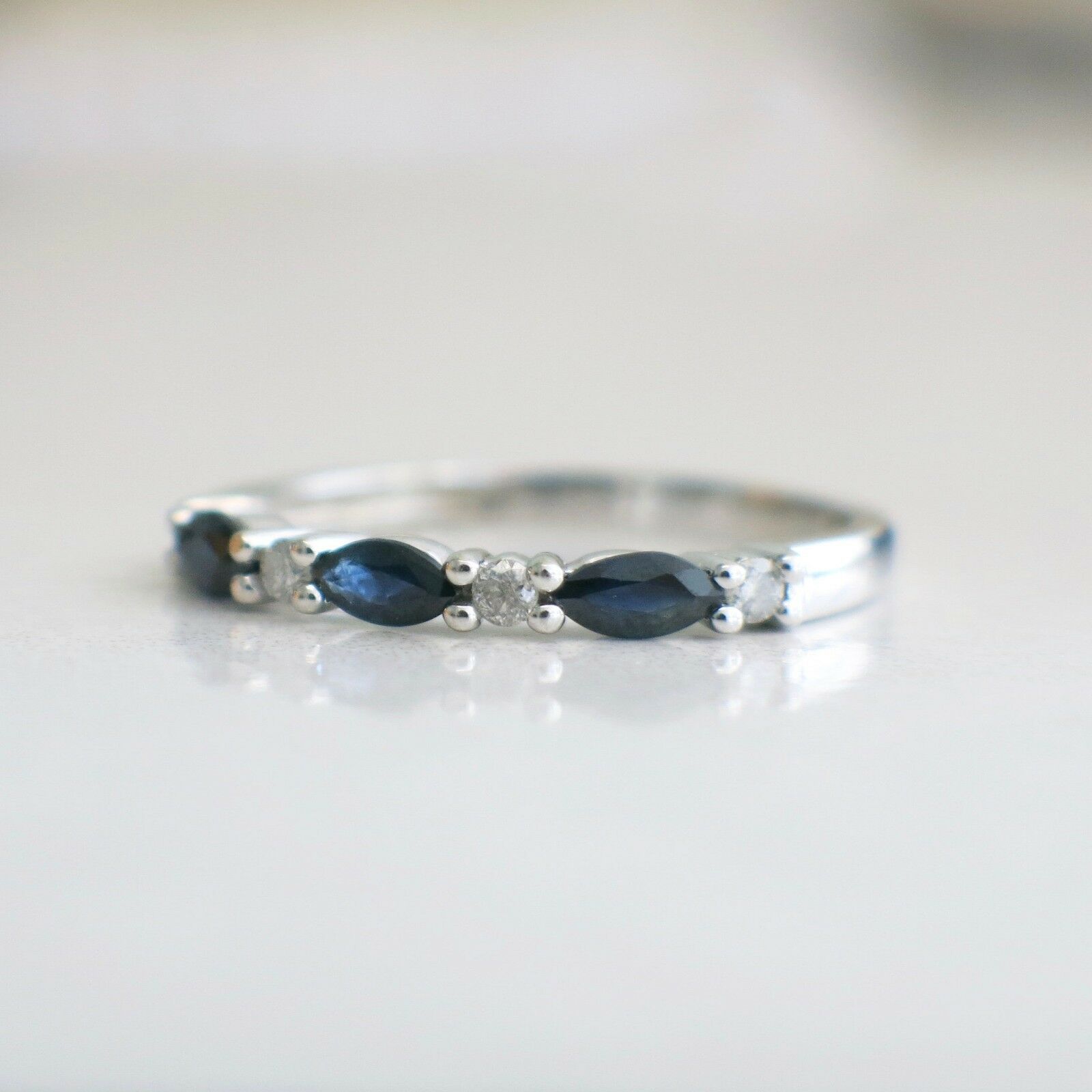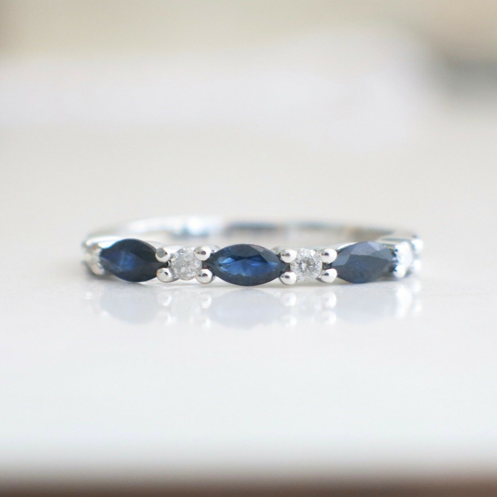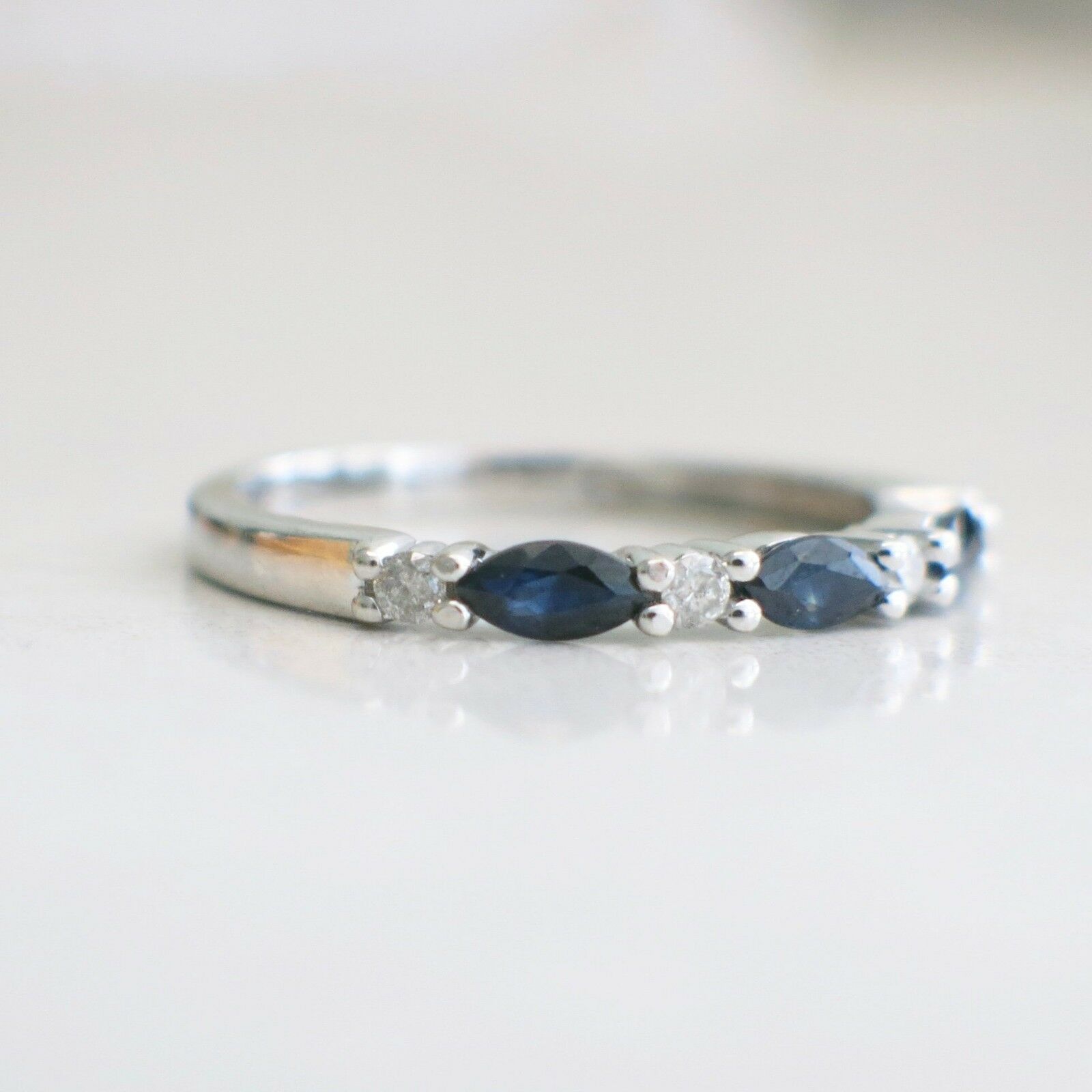 2ct Marquise Blue Sapphire Diamond Minimalist Wedding Ring 14k White Gold Finish
