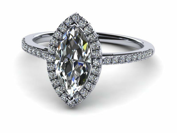 2ct Marquise Cut Diamond Vintage Solitaire Engagement Ring 14k White Gold Finish