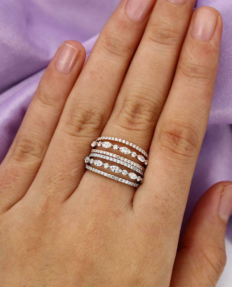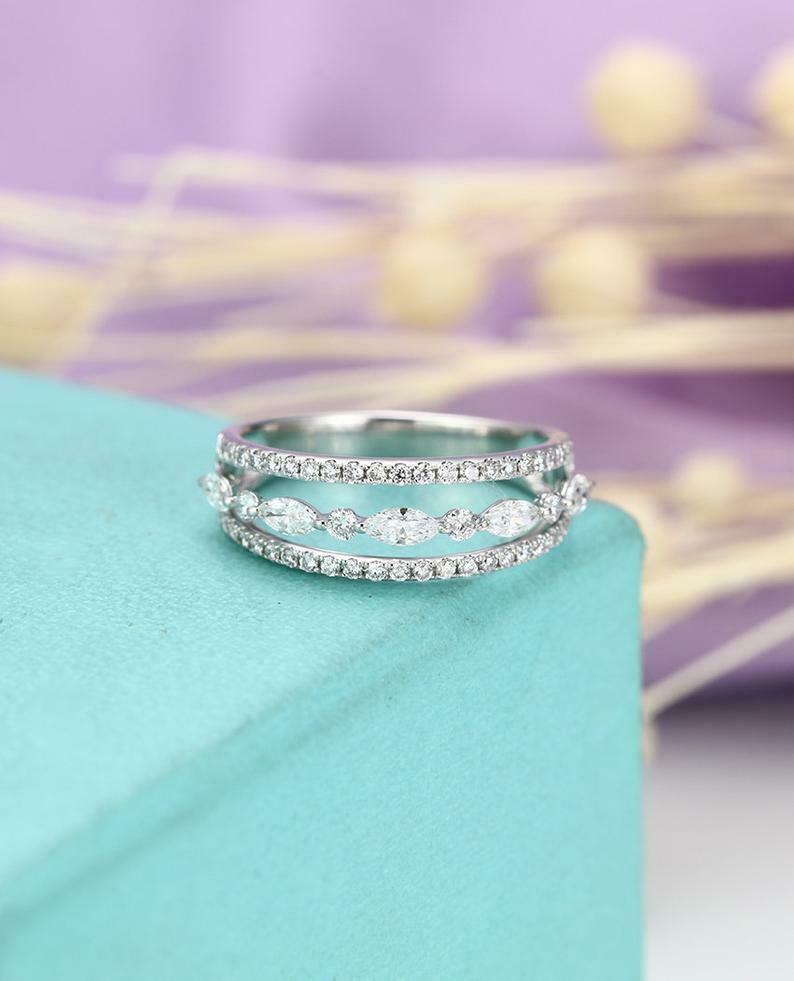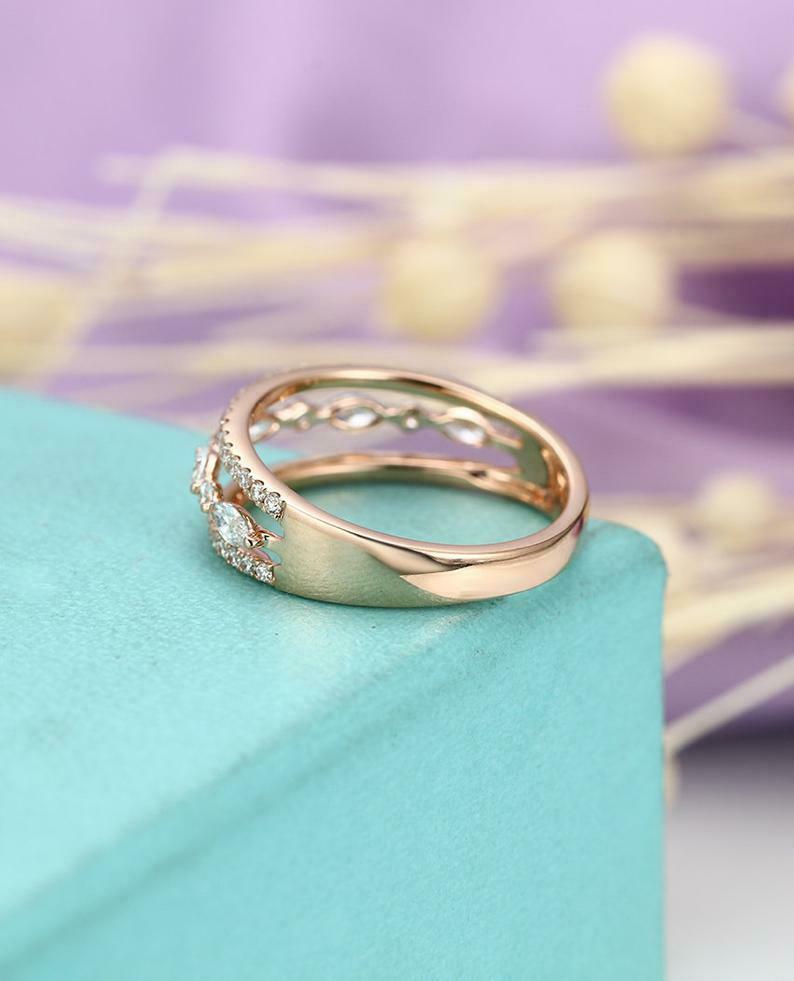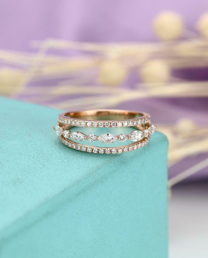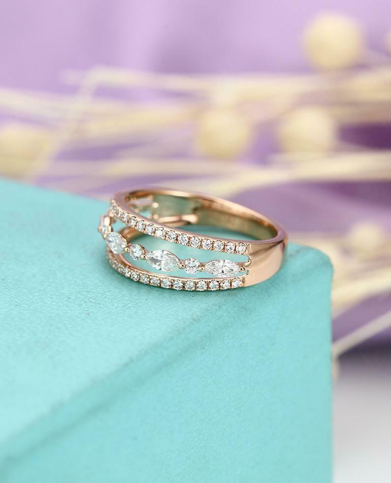 2ct Marquise Cut Diamond Wedding Band Three Row Open Stylish 14k Rose Gold Finish