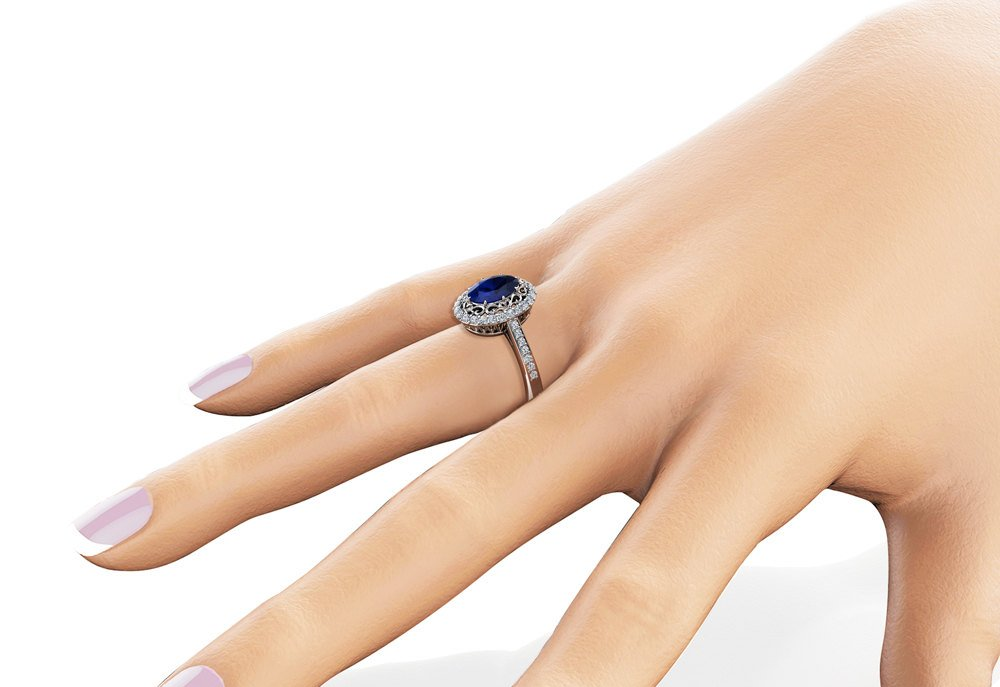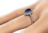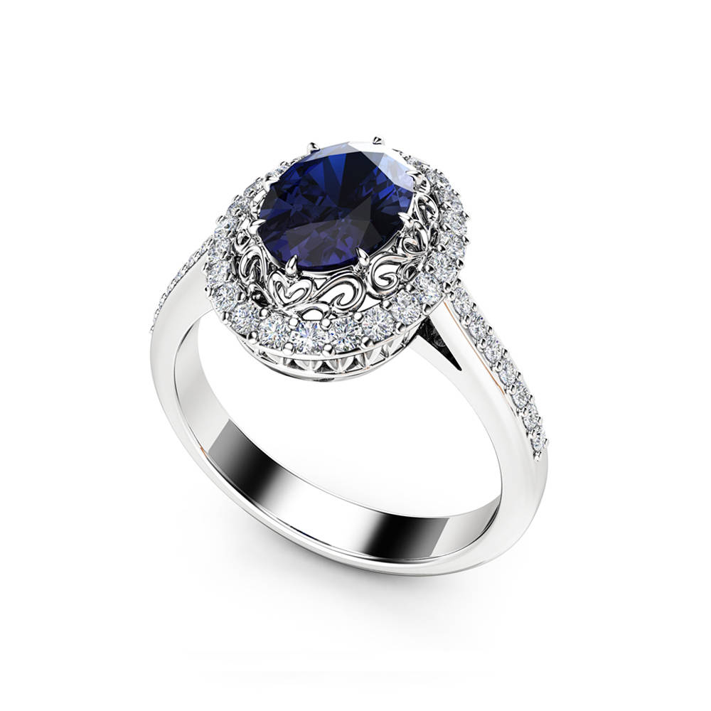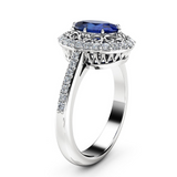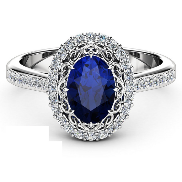 2ct Oval Blue Sapphire Engagement Ring 14k White Gold Finish Halo Filigree Style