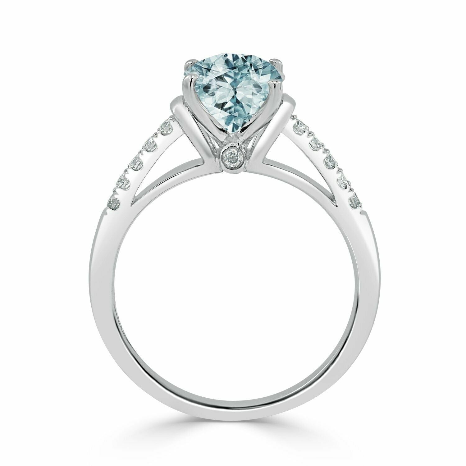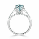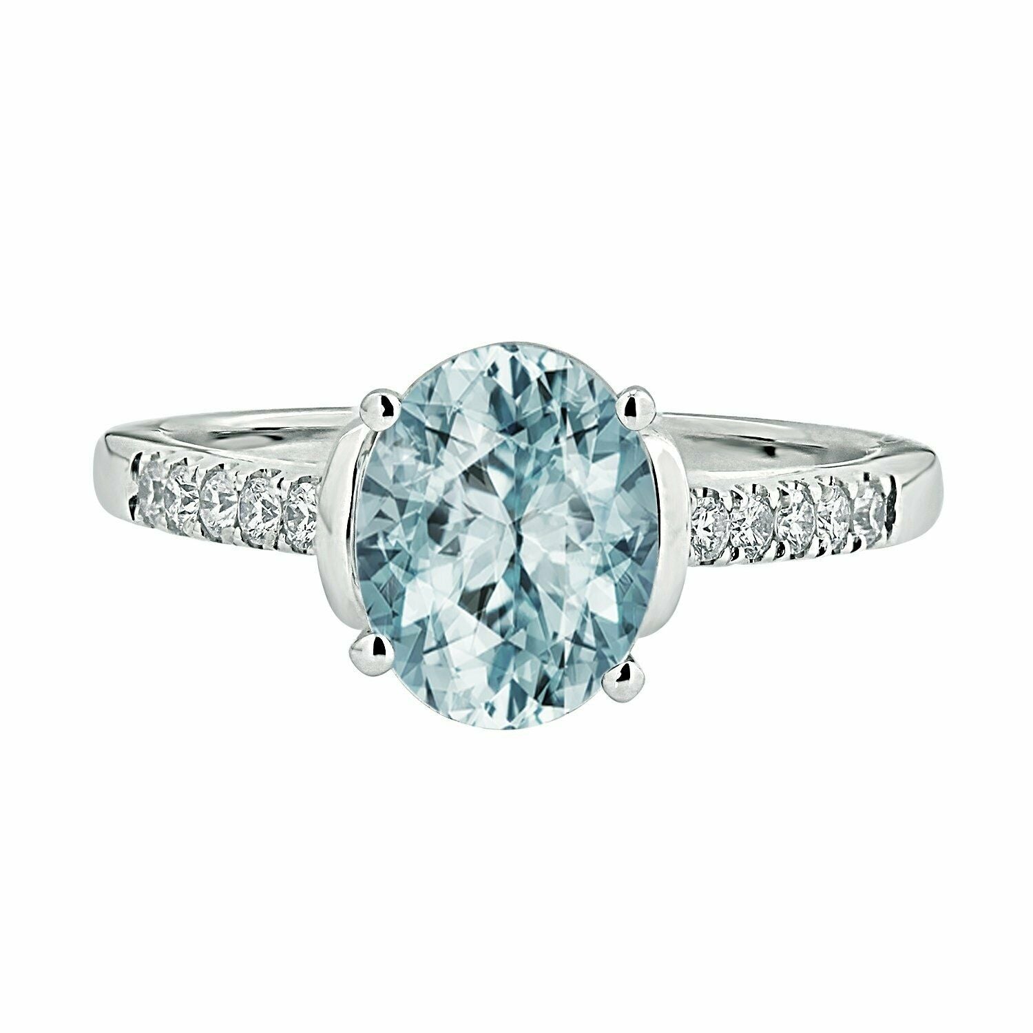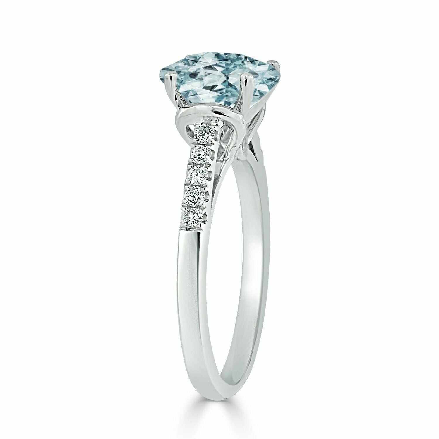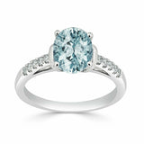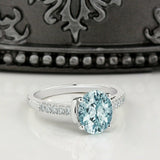 2Ct Oval Cut Blue Aquamarine Solitaire Ring 14K White Gold Finish Round Accents