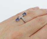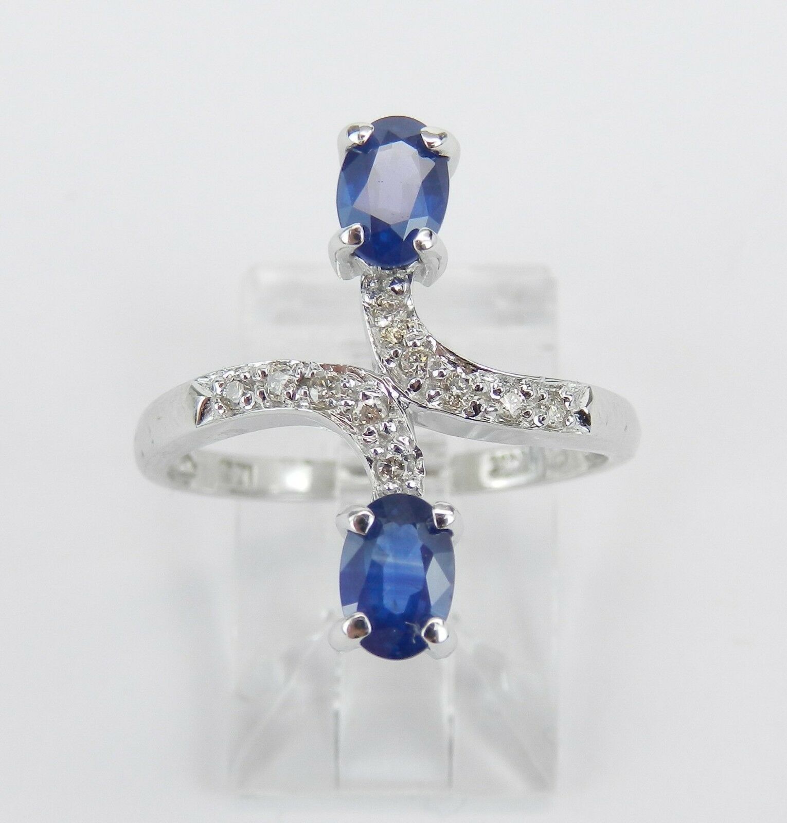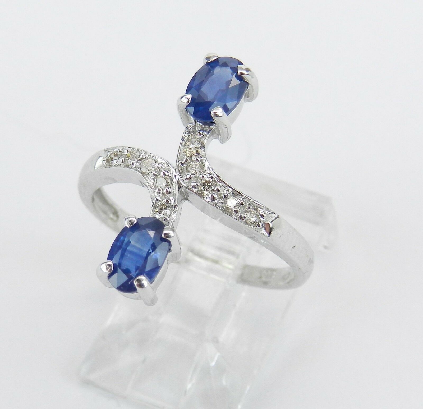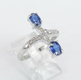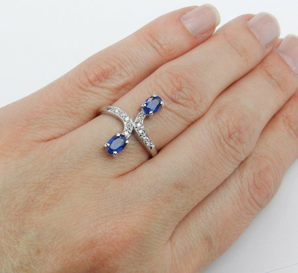 2ct Oval Cut Blue Sapphire Diamond ByPass Engagement Ring 14k White Gold Finish