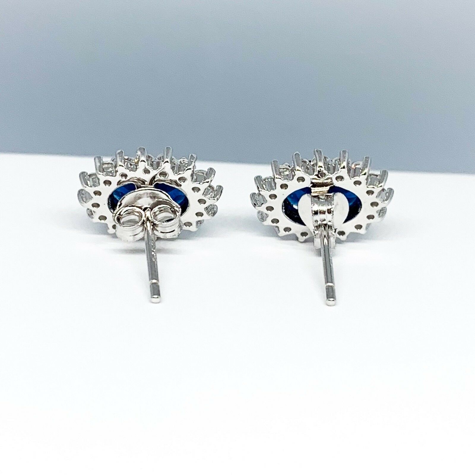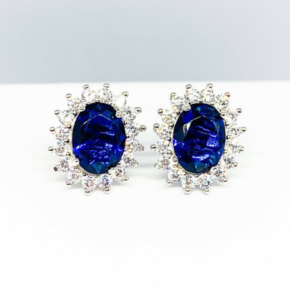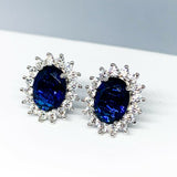 2Ct Oval Cut Blue Sapphire Diamond Flower Halo Stud Earrings 14K White Gold Over