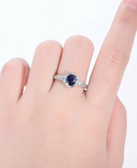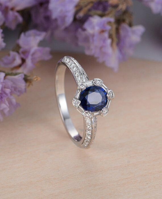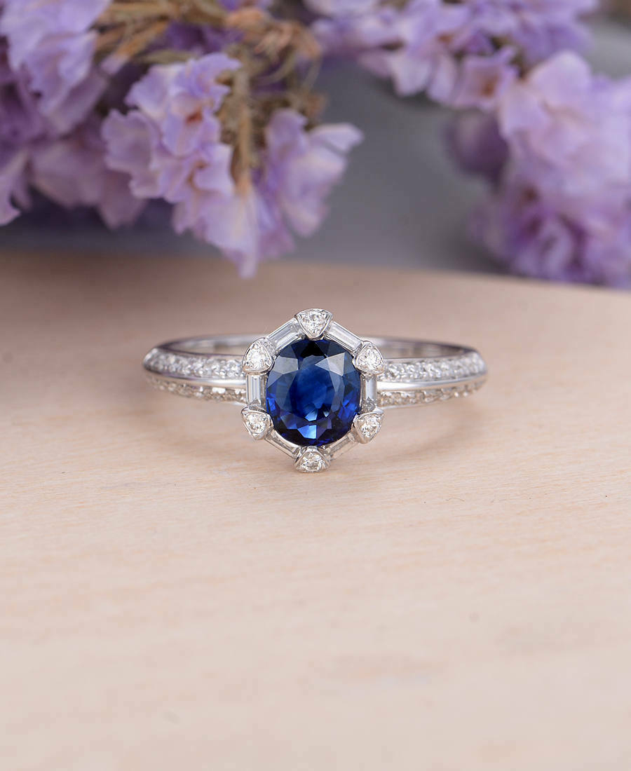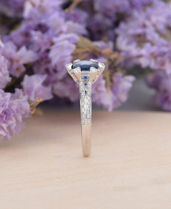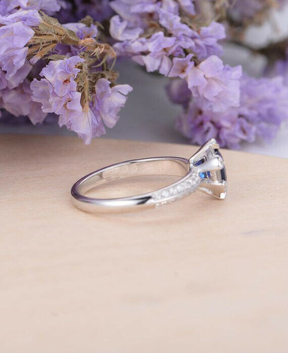 2ct Oval Cut Blue Sapphire Engagement Ring 14k WhiteGold Finish Unique Solitaire