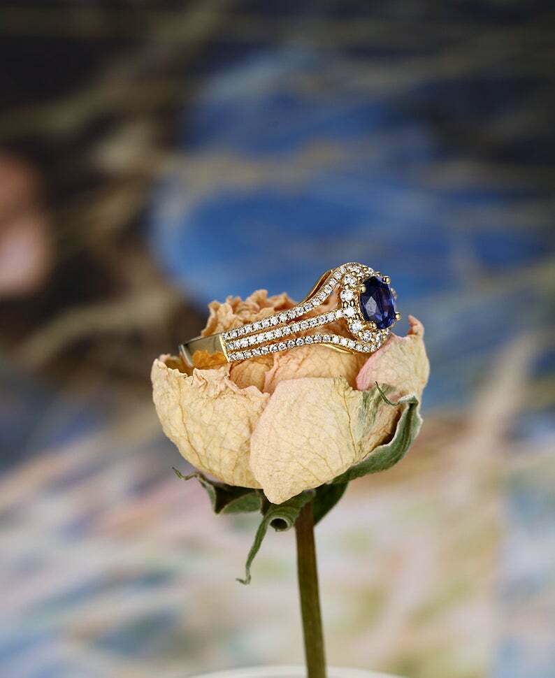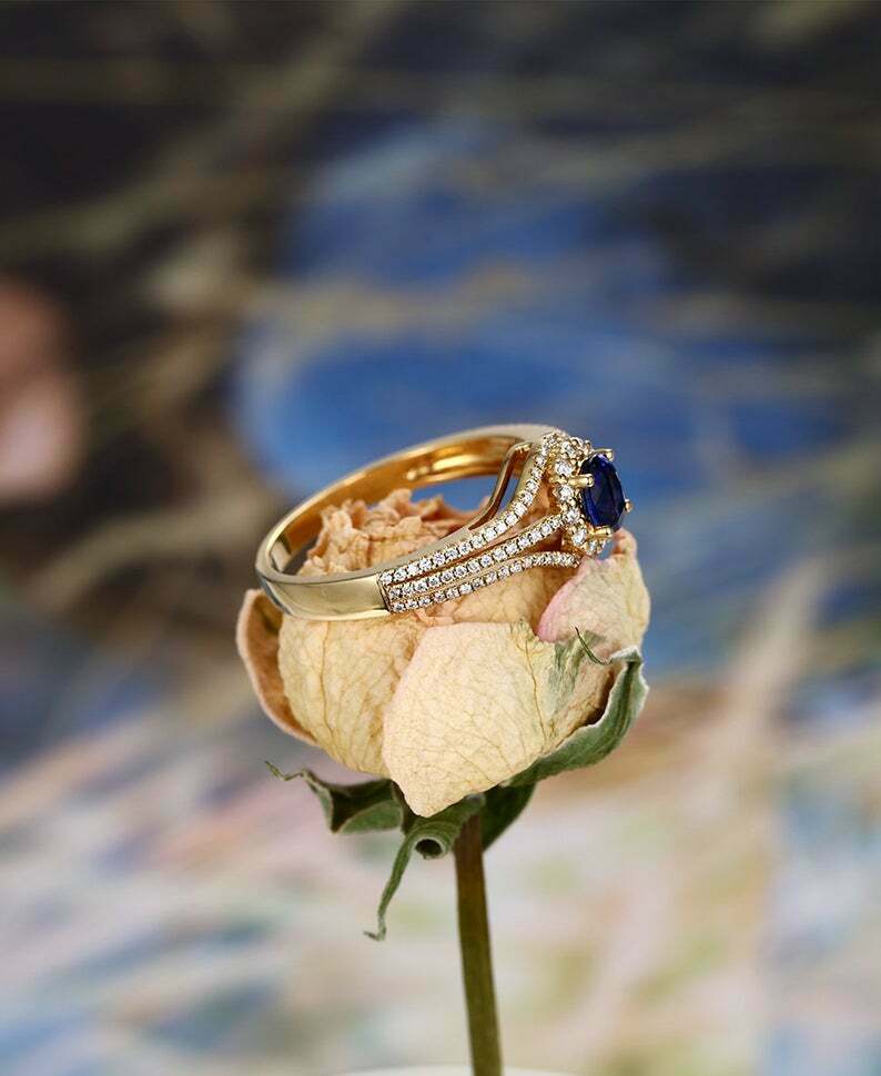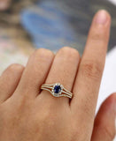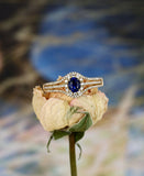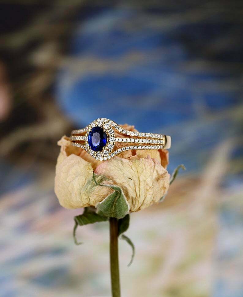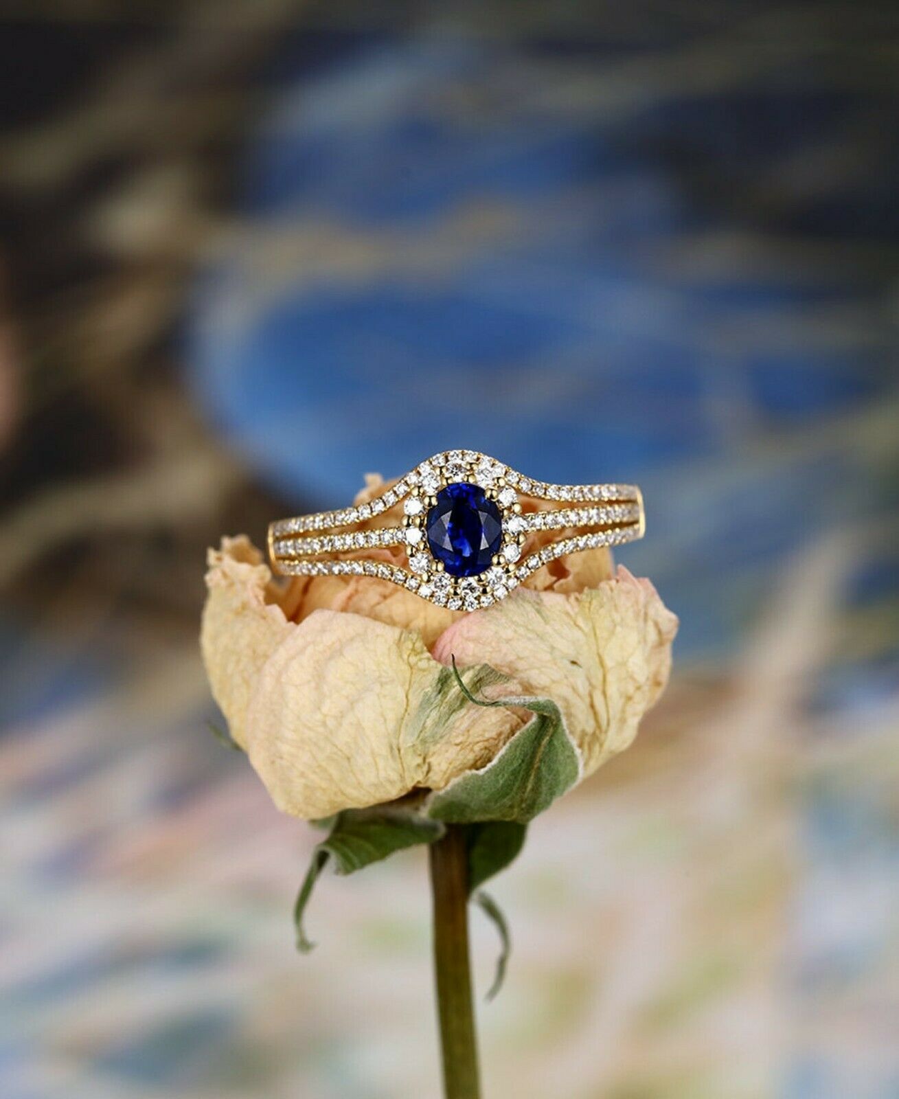 2ct Oval Cut Blue Sapphire Engagement Ring Split Shank Halo 14k Yellow Gold Over