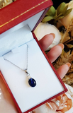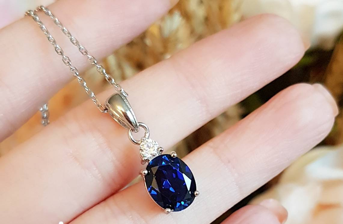 2ct Oval Cut Blue Sapphire Pendant Chain Diamond Solitaire 14k White Gold Finish