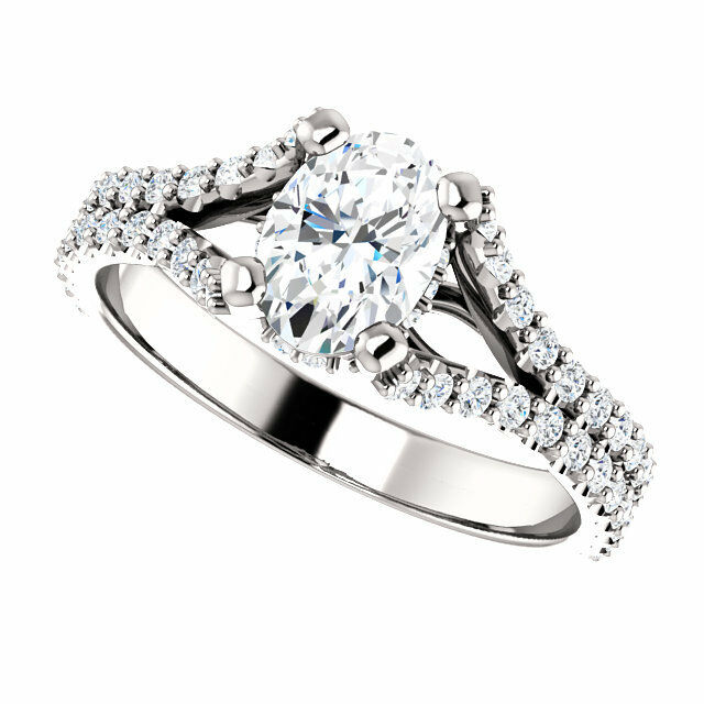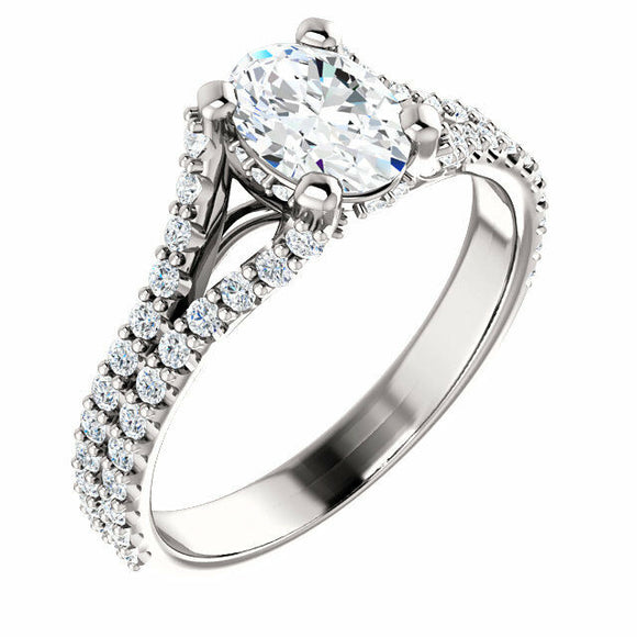 2ct Oval Cut Diamond Split Shank Solitaire Engagement Ring 14k White Gold Finish