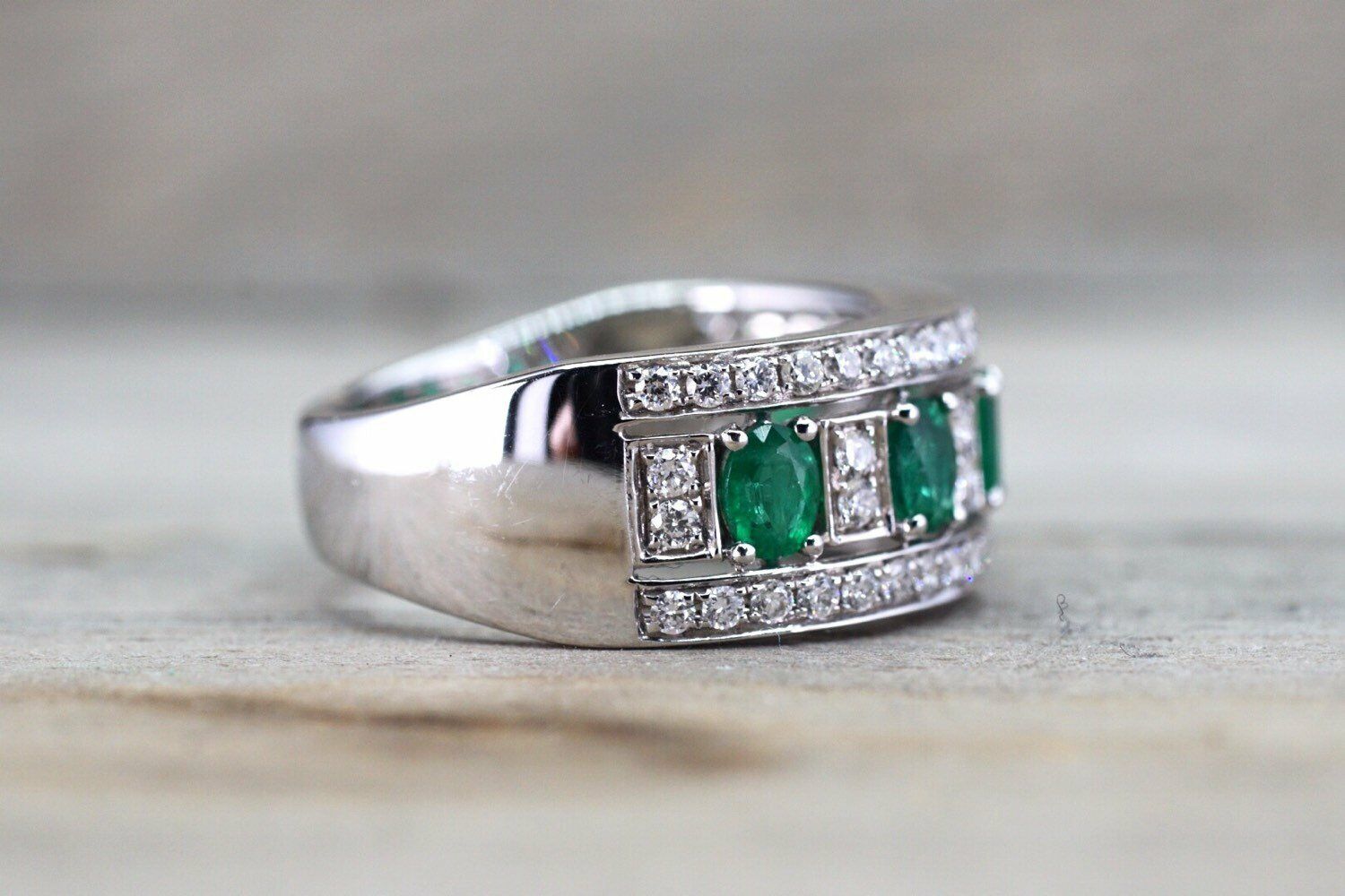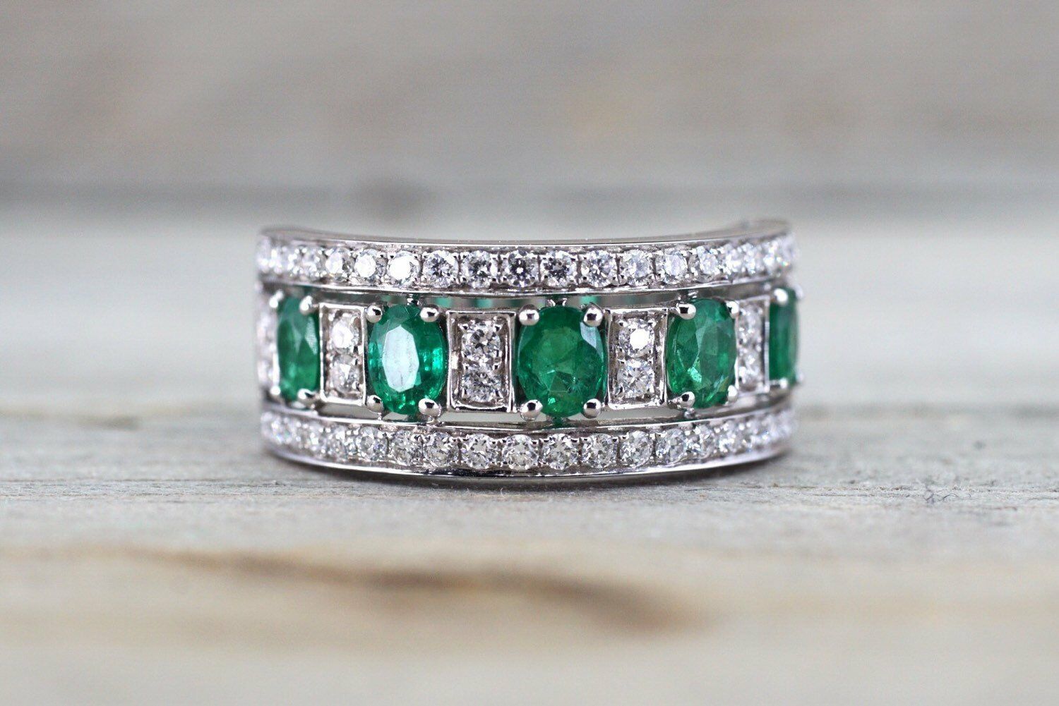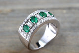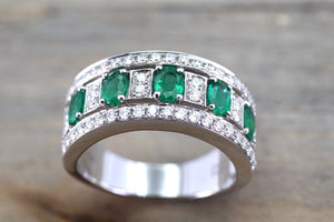 2ct Oval Cut Green Emerald Half Eternity Wedding Band Ring 14k White Gold Finish