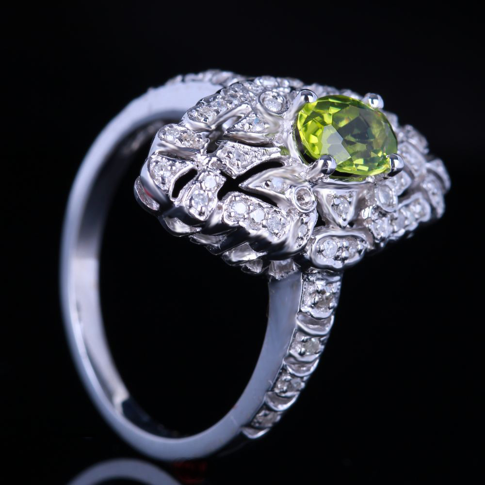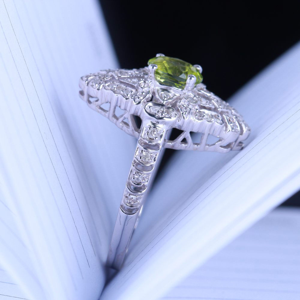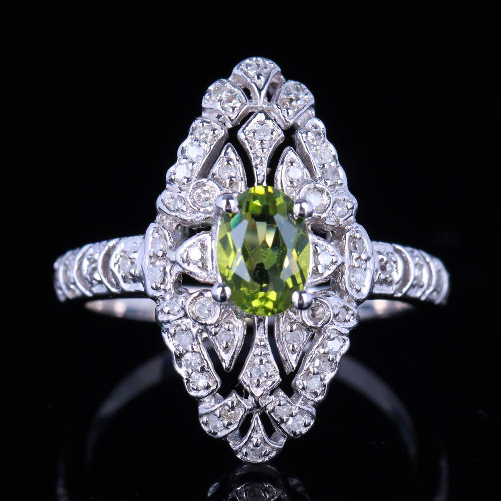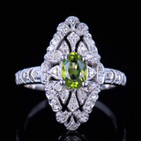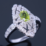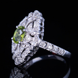 2ct Oval Cut Green Peridot Antique Vintage Engagement Ring 14k White Gold Finish