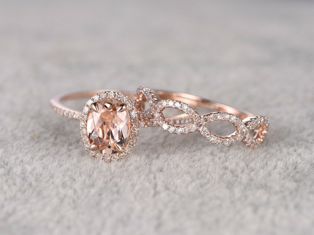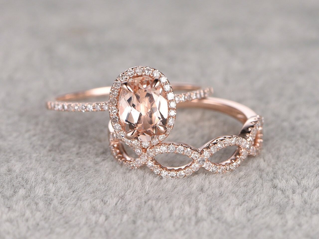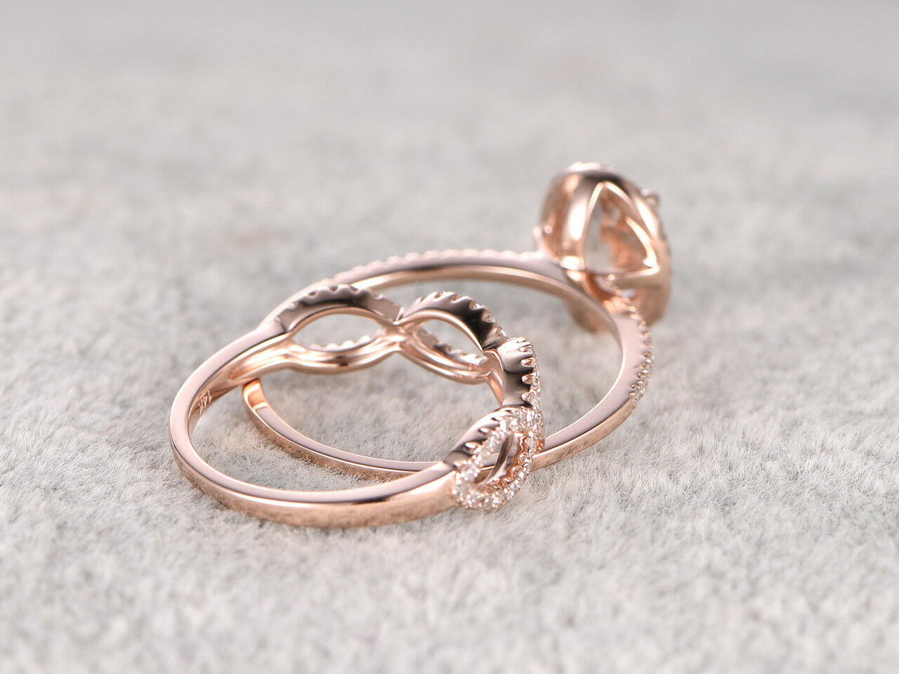 2ct Oval Cut Morganite Bridal Wedding Set Infinity Design 14k Rose Gold Finish
