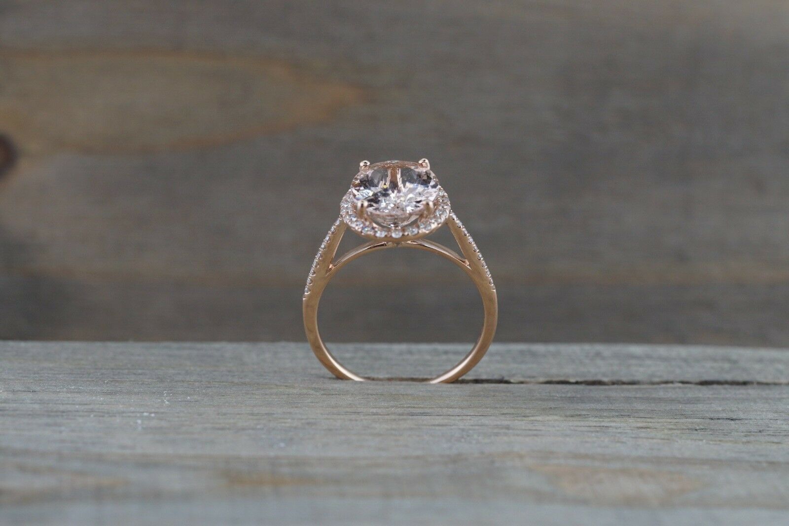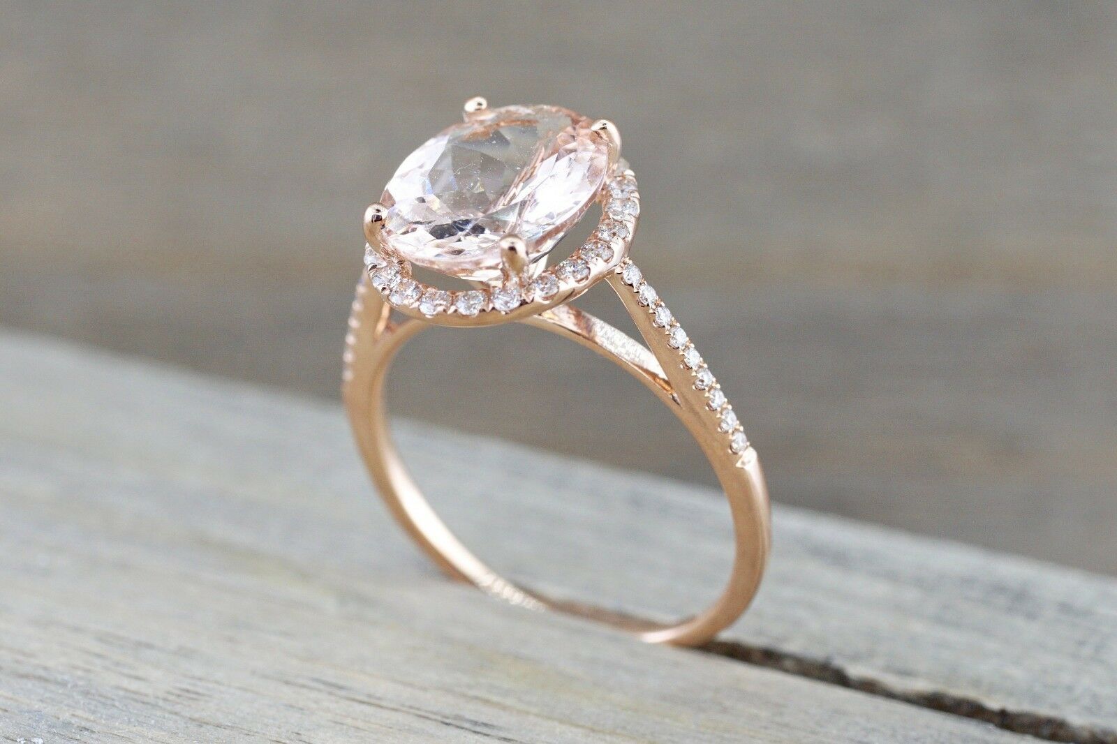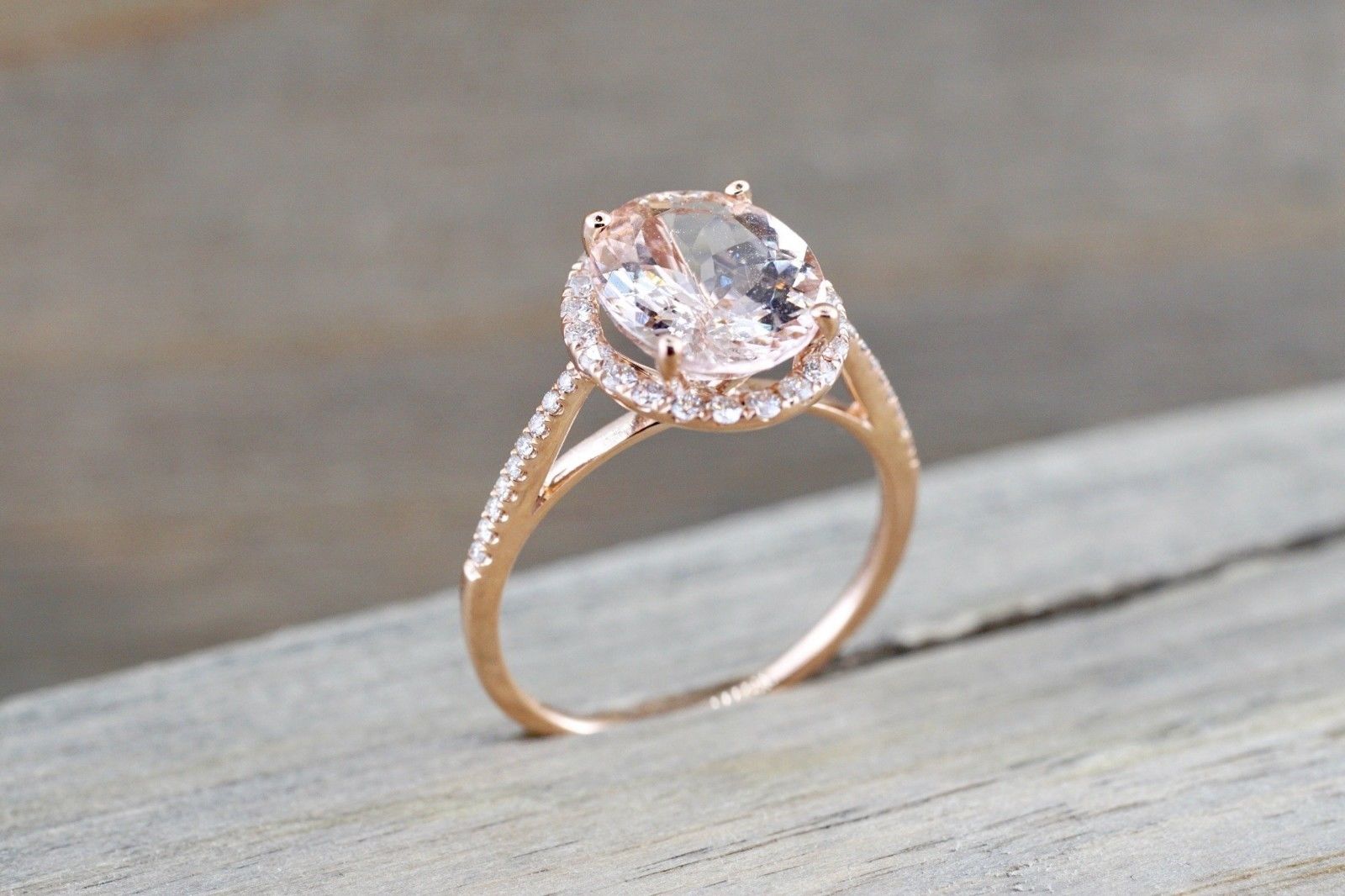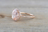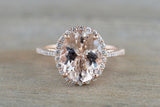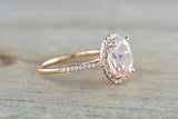 2ct Oval Cut Peach Morganite Halo Solitaire Engagement Ring 18k Rose Gold Finish