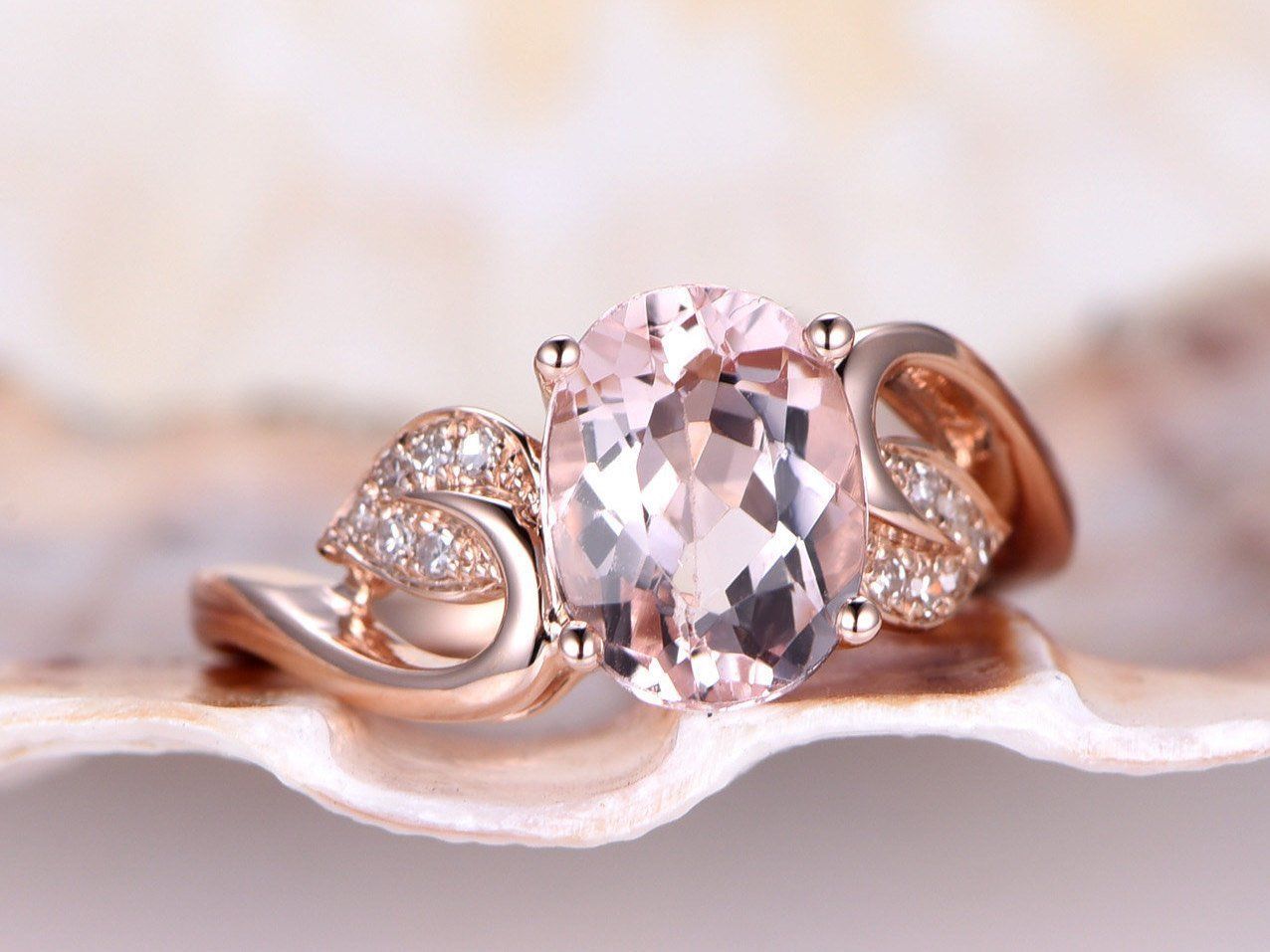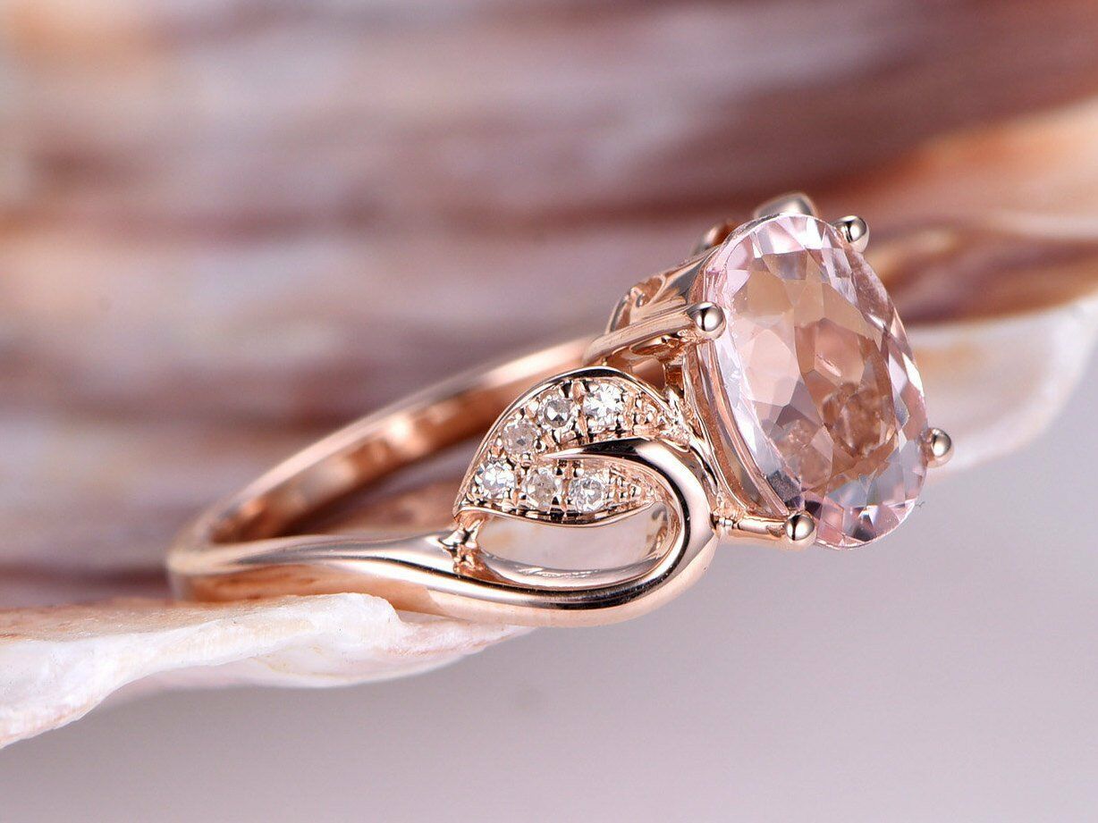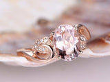 2ct Oval Cut Peach Morganite Vintage Floral Engagement Ring 14k Rose Gold Finish