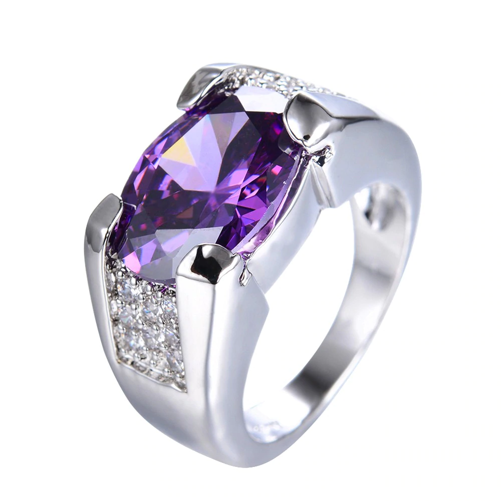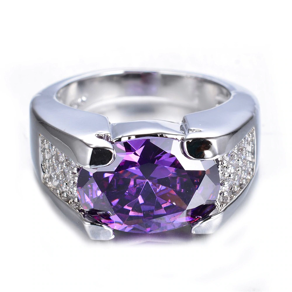 2ct Oval Cut Purple Amethyst Antique Engagement Ring 14k White Gold Finish Women