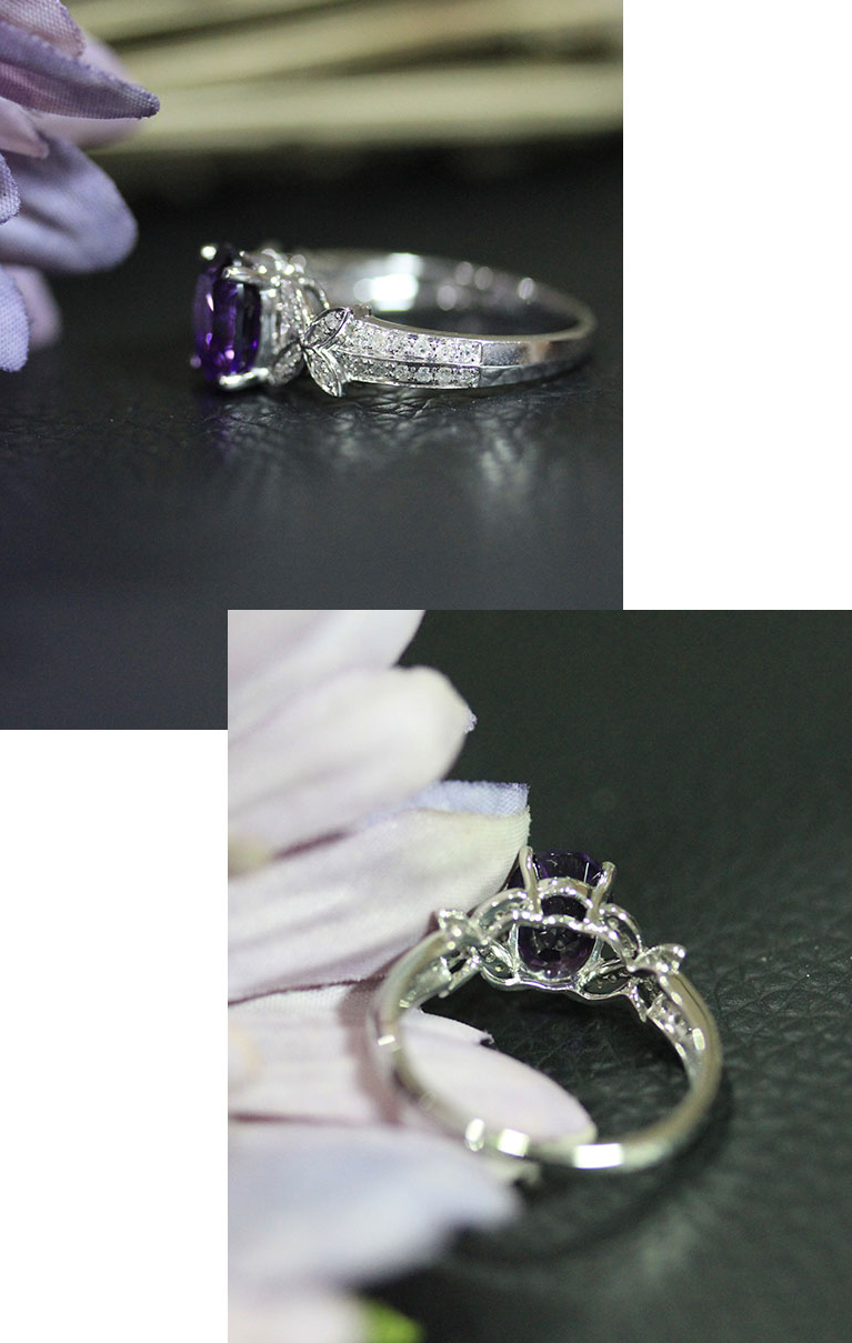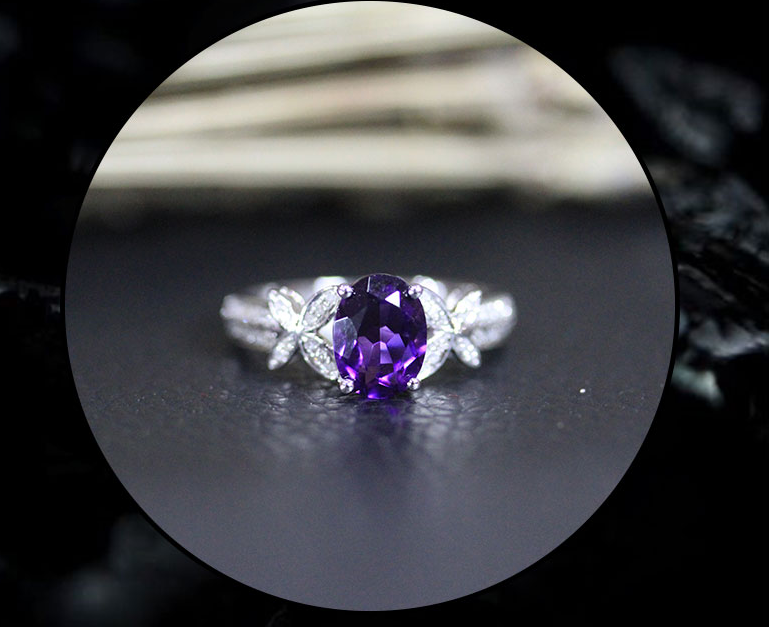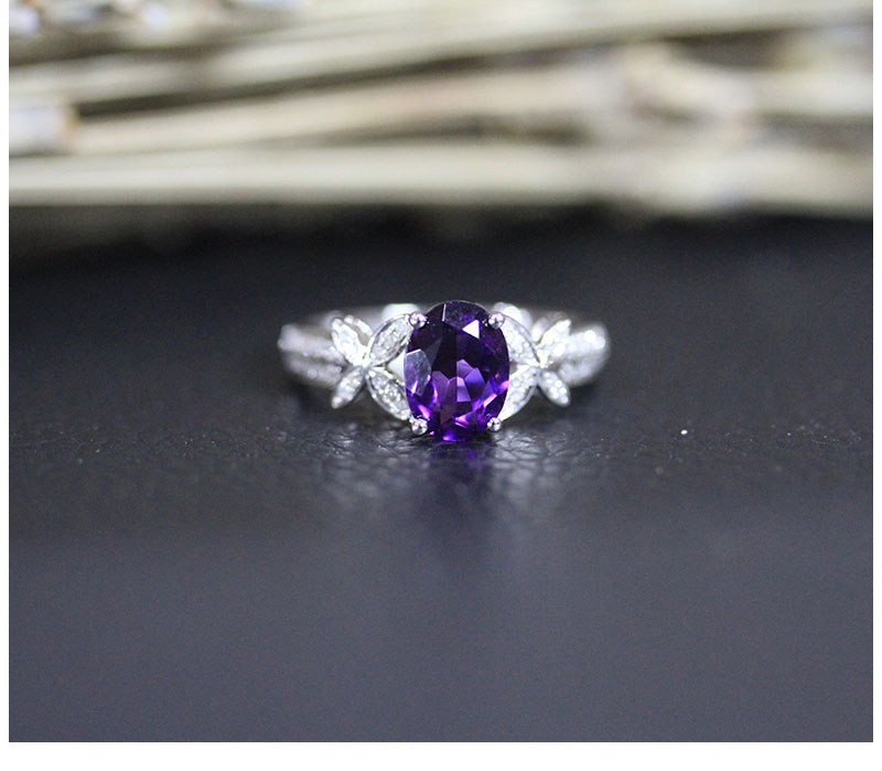 2ct Oval Cut Purple Amethyst Engagement Ring 14k White Gold Finish Floral Design