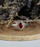 2ct Oval Cut Red Garnet Engagement Ring 14k White Gold Finish Halo Heart Shape