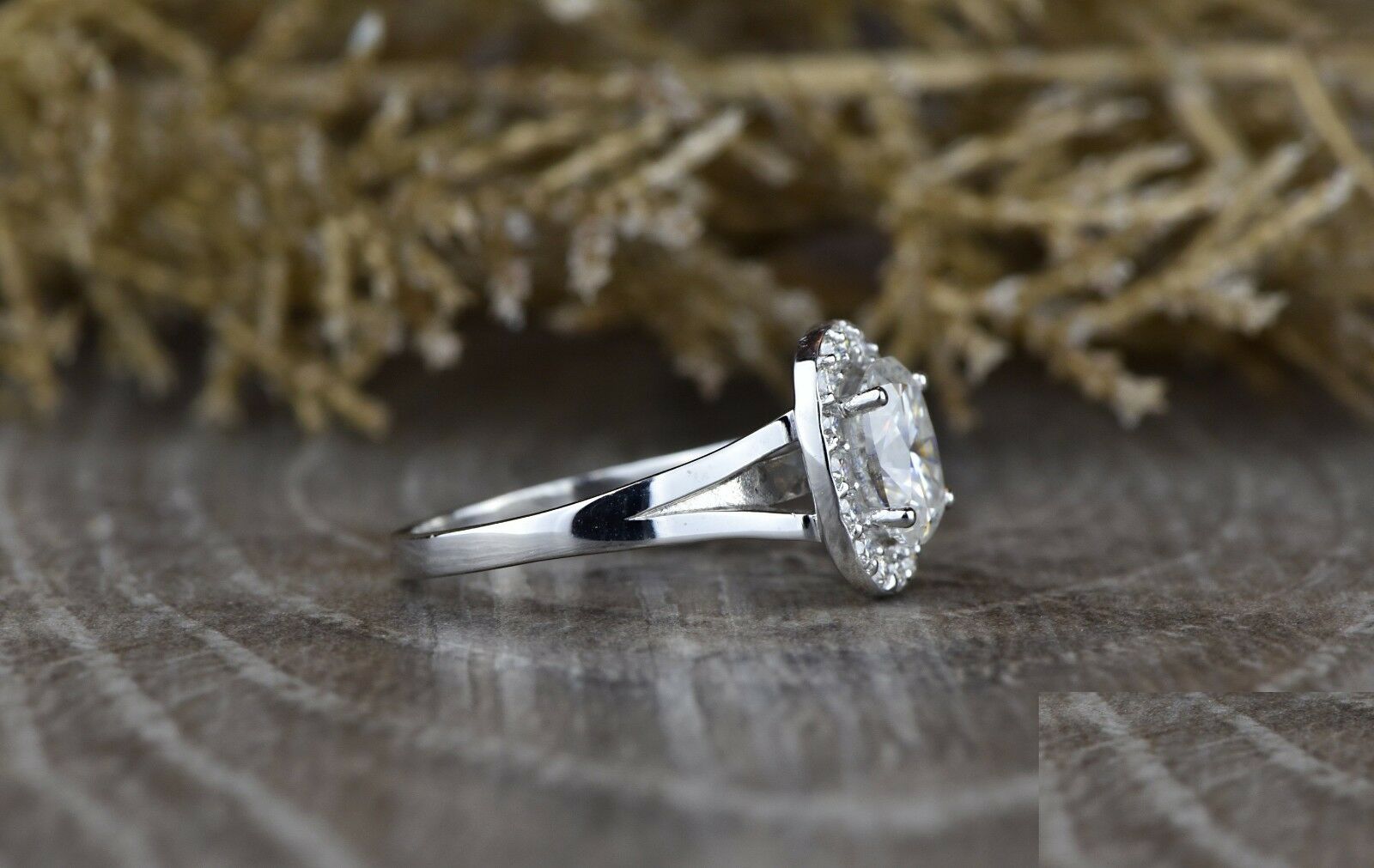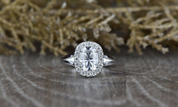 2ct Oval Cut VVS1D Diamond Engagement Ring 14k WhiteGold Finish Halo Split Shank