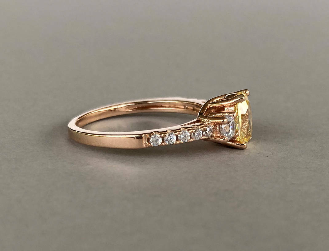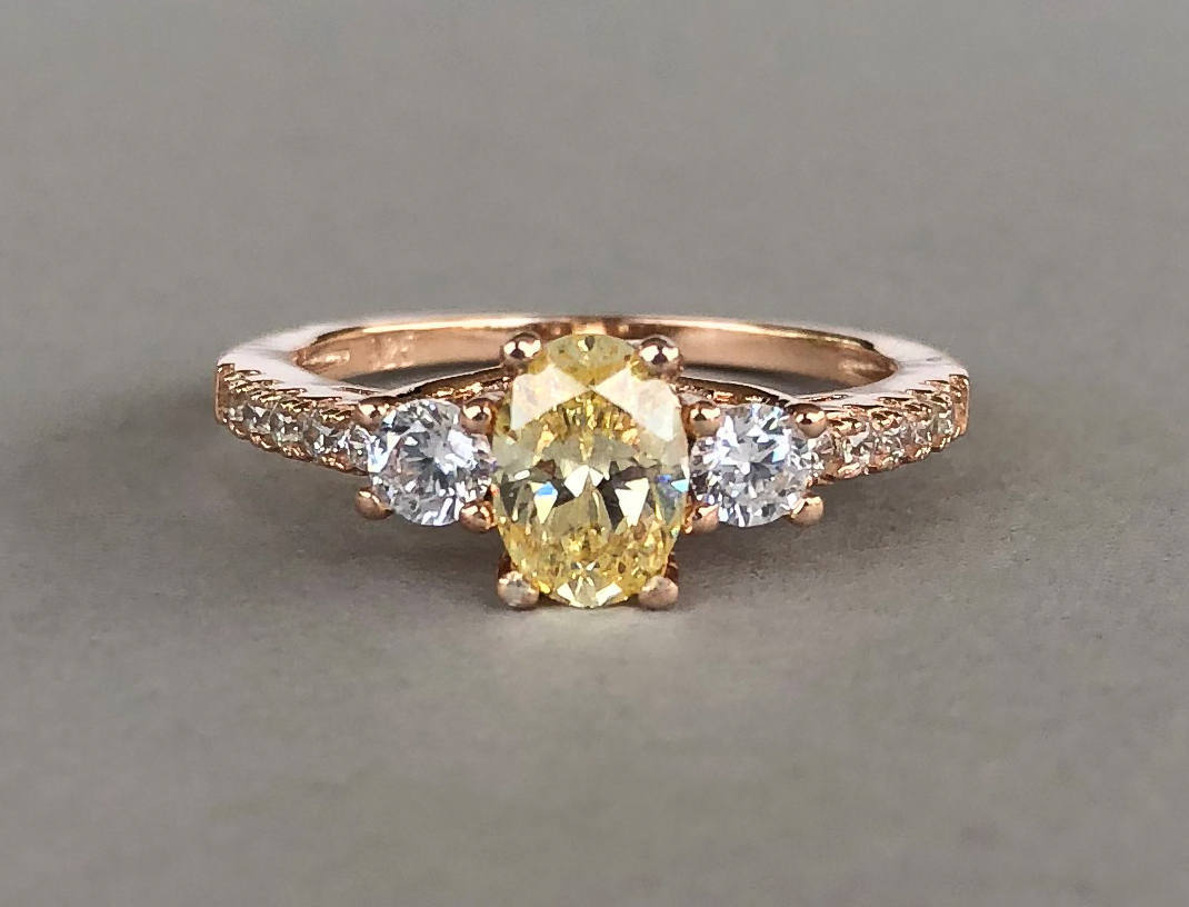 2ct Oval Cut Yellow Sapphire Three Stone Engagement Ring 14k Rose Gold Finish