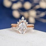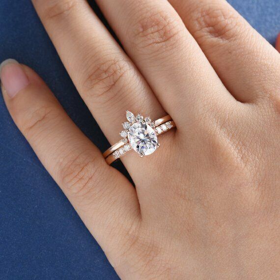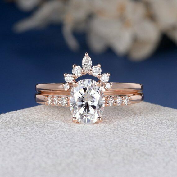 2ct Oval Diamond Engagement Ring 14k Rose Gold Finish Unique Curved Bridal Set