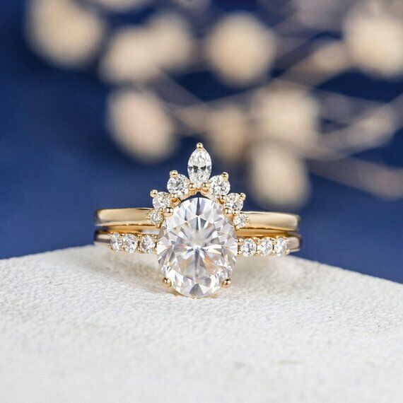 2ct Oval Diamond Engagement Ring 14k Yellow Gold Finish Unique Curved Bridal Set