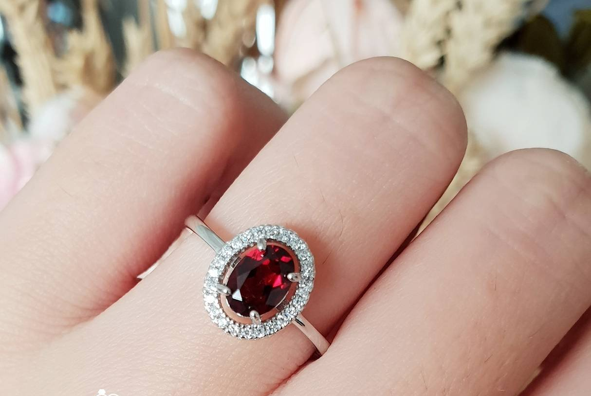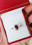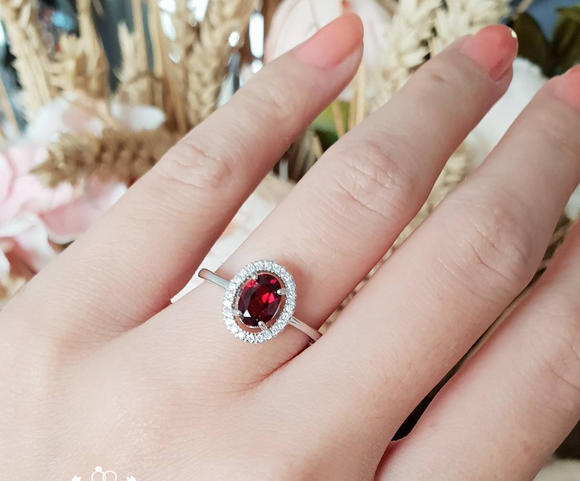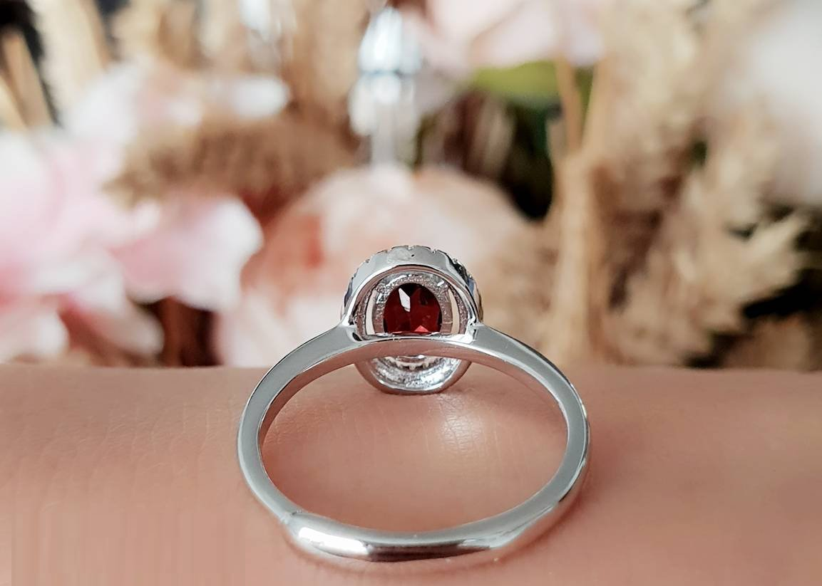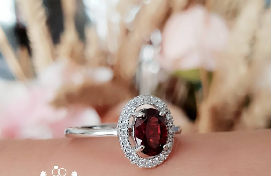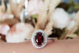 2ct Oval Red Garnet Engagement Ring 14k White Gold Finish Halo Cluster Statement