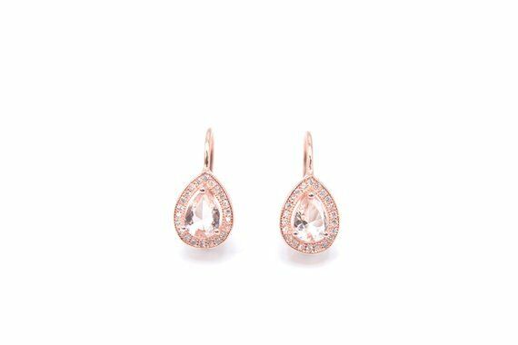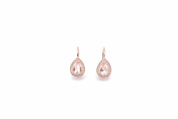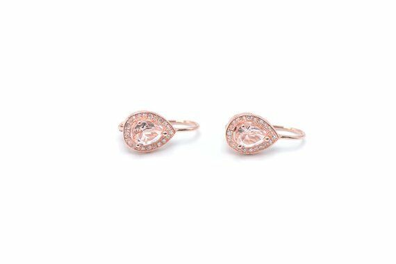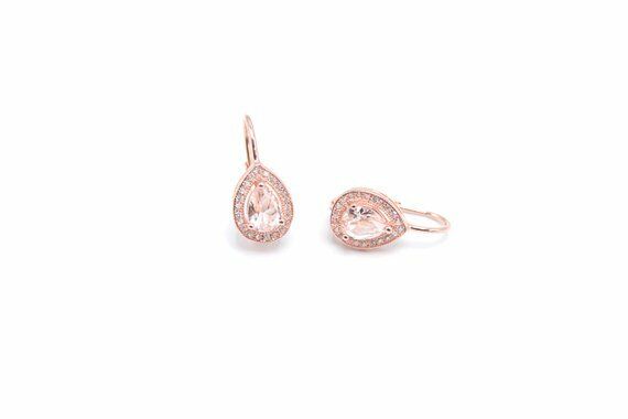 2ct Pear Cut Champagne Morganite Tear Drop Stud Earring 14k Rose Gold Finish New
